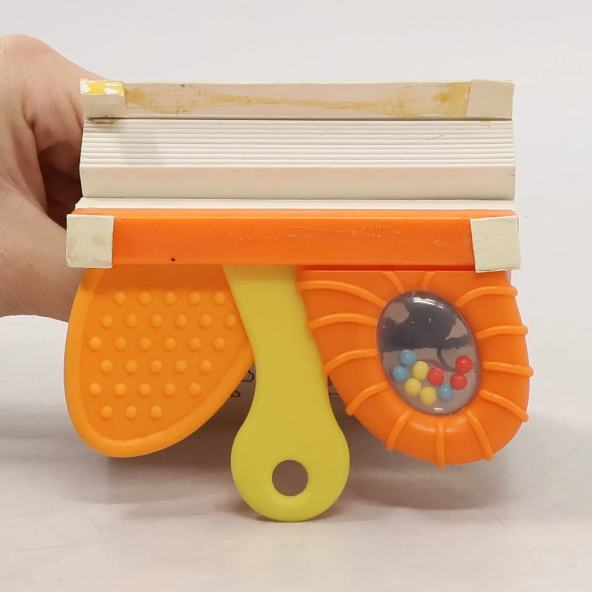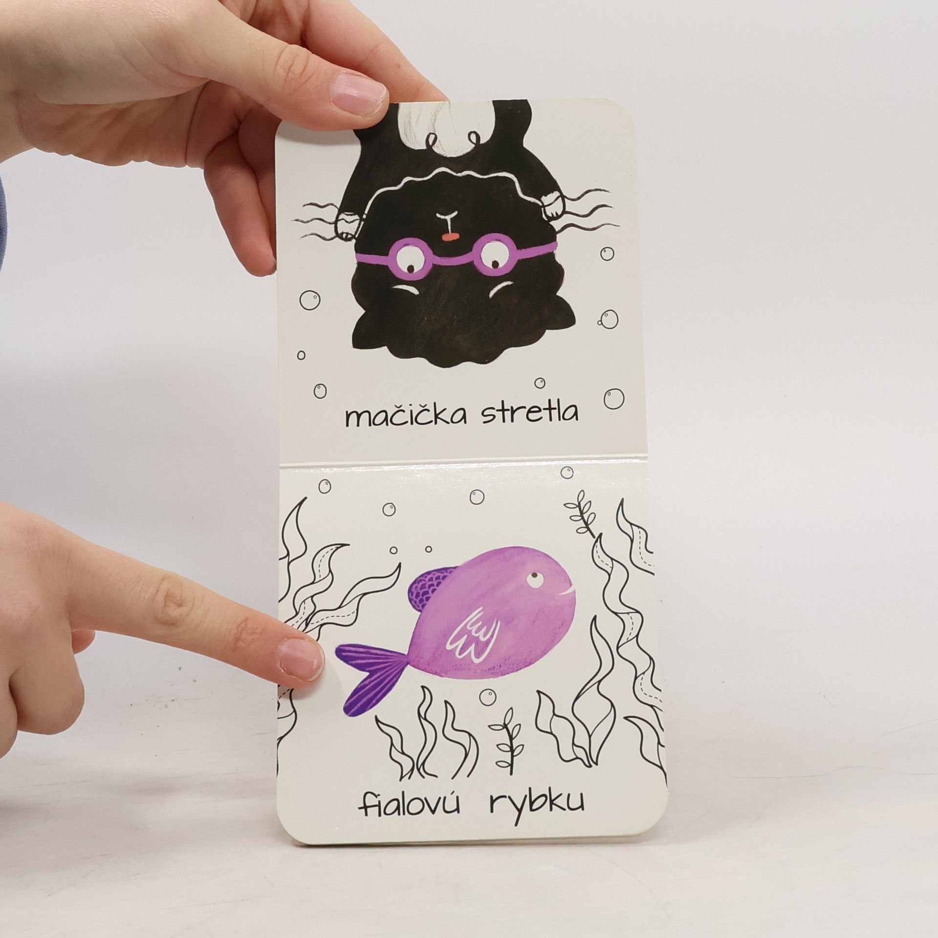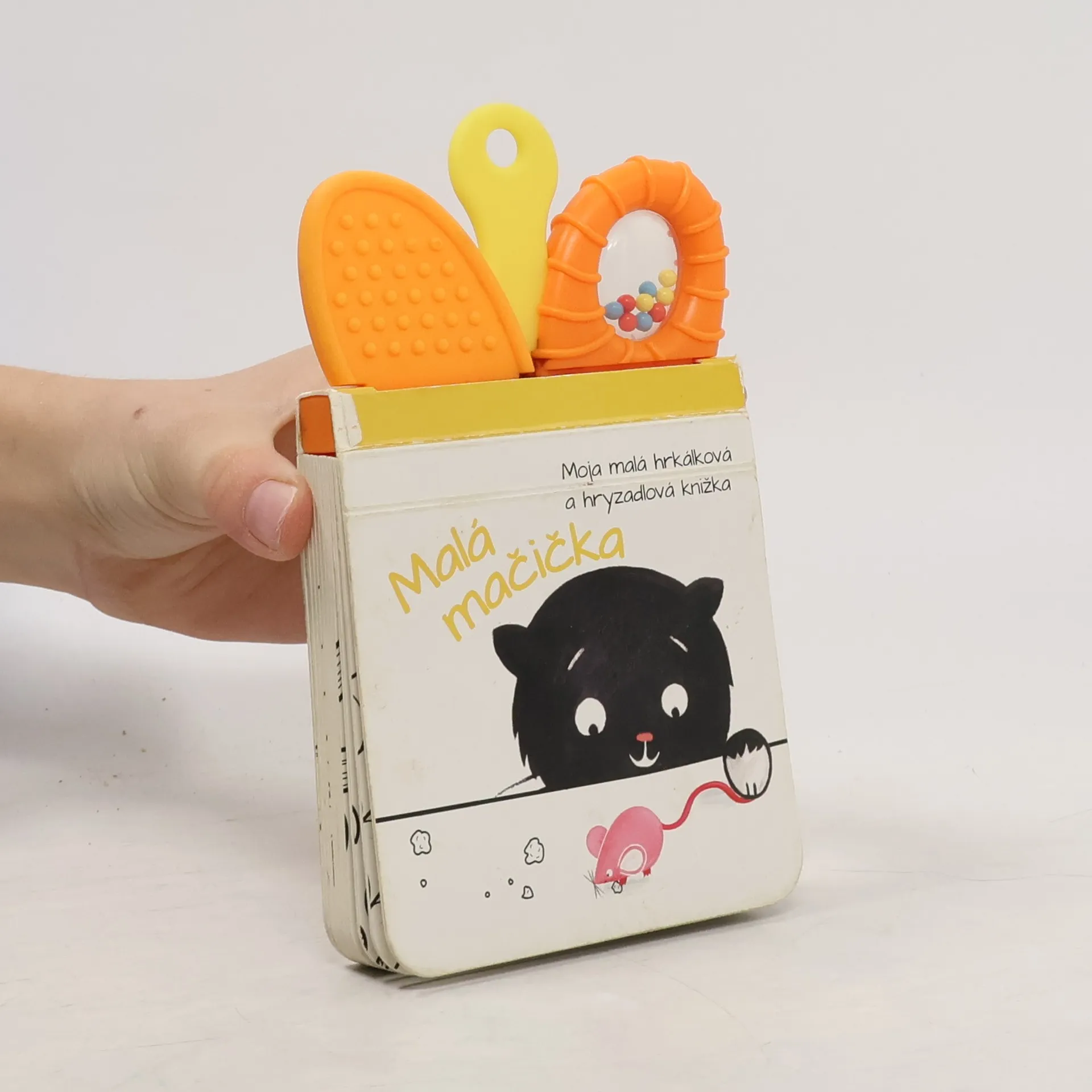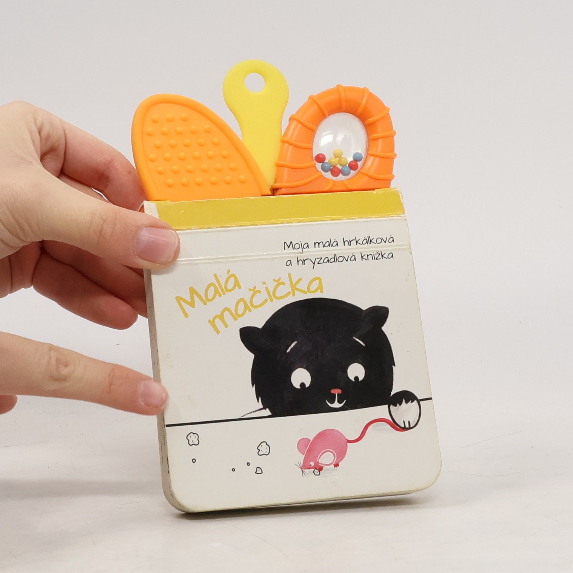 Knižka s hrkálkami a hryzadlami, ktorú si všetky deti obľúbia! Spoznávajte spolu s mačičkou nové zvieratká a farby.