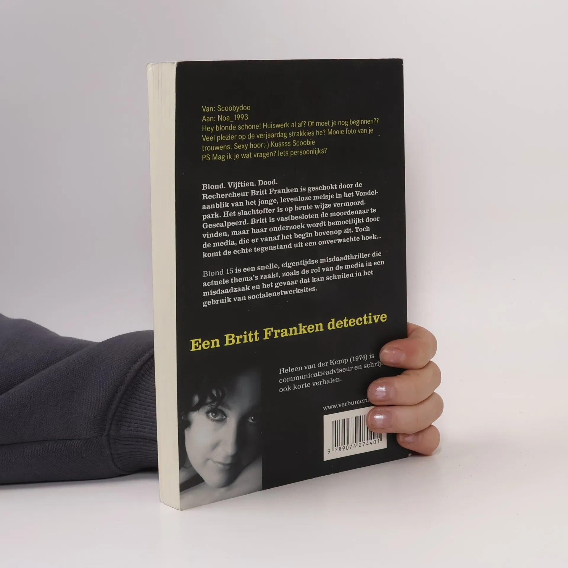 Een Britt Franken detective ‘Verdomme! Wat is dat?’ Arthurs stem sloeg over. Hij graaide naar zijn aansteker en liet het vlammetje verlichten wat hij in zijn handen hield. Hij keek neer op Maria. Haar witte truitje was doordrenkt. Vlak achter haar het naakte vlees. Arthur registreerde wat hij zag, wat zich opdrong aan zijn netvlies. Rood op wit, wit vlees op zand. ‘Wat is dat,’ Maria staarde naar zijn handen. ‘Niet kijken!’ zijn stem klonk scherp, gebiedend. Maria gilde rauw en hoog. Haar ogen draaiden weg. ‘Maria!’ Arthur wierp de hoofdhuid van zich af en het lange blonde haar verdween in de nacht. Maar het beeld bleef altijd bij hem. Daar kwam hij nooit meer vanaf. Arthur gaf over naast de twee lichamen. Het één warm, het ander koud. In het Vondelpark in Amsterdam wordt een jong meisje gevonden. Vermoord. Gescalpeerd. Deze gebeurtenis staat niet op zich want enige jaren eerder, is er op soortgelijke wijze een jong meisje afgeslacht. Britt Franken, rechercheur bij de politie Amsterdam, wordt op de zaak gezet. Als alleenstaande moeder met een dochter van dezelfde leeftijd als het slachtoffer is ze extra gedreven om de dader te vinden en de zaak op te lossen. Dat is niet eenvoudig, onder meer omdat de media zich er vanaf het begin af aan mee bemoeit. Maar de echte tegenstand komt uit een hoek die Britt niet had verwacht……