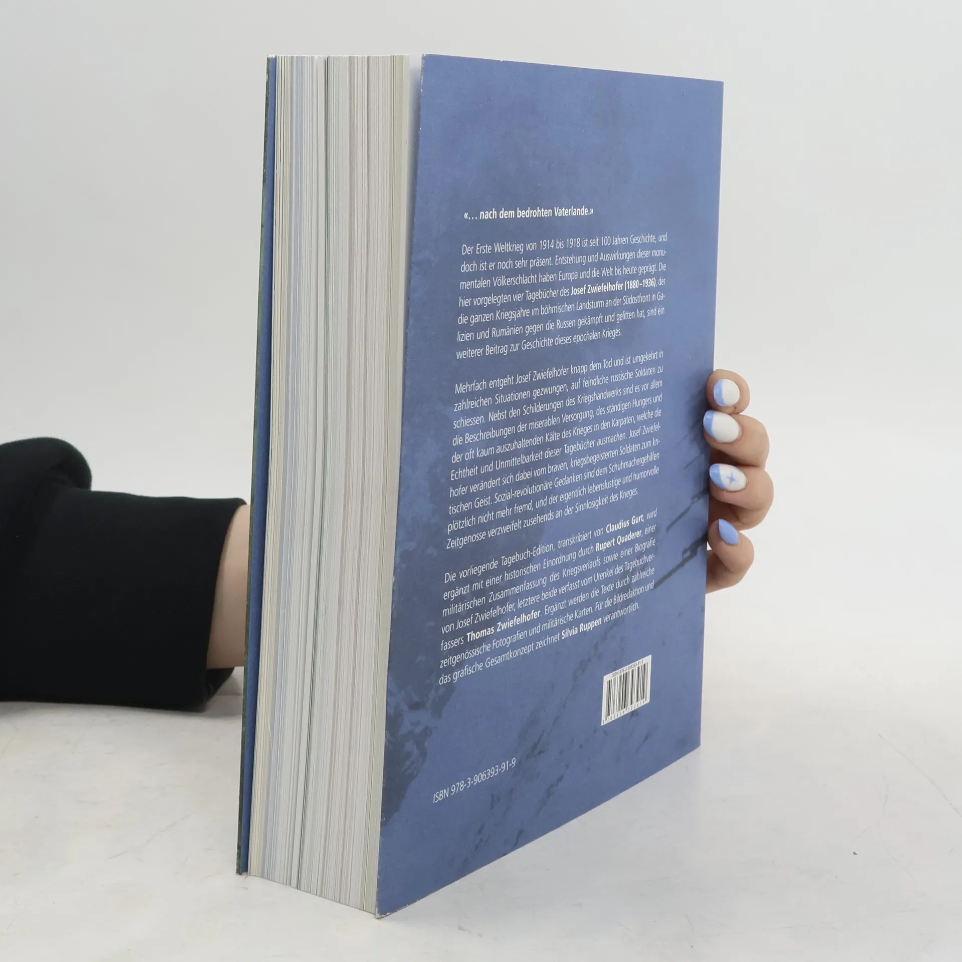 "Der Erste Weltkrieg von 1914 bis 1918 ist seit 100 Jahren Geschichte, und doch ist er noch sehr präsent. Entstehung und Auswirkungen dieser monumentalen Völkerschlacht haben Europa und die Welt bis heute geprägt. Die hier vorgelegten vier Tagebücher des Josef Zwiefelhofer (1880-1936), der die ganzen Kriegsjahre im böhmischen Landsturm an der Südostfront in Galizien und Rumänien gegen die Russen gekämpft und gelitten hat, sind ein weiterer Beitrag zur Geschichte dieses epochalen Krieges." -- Back cover