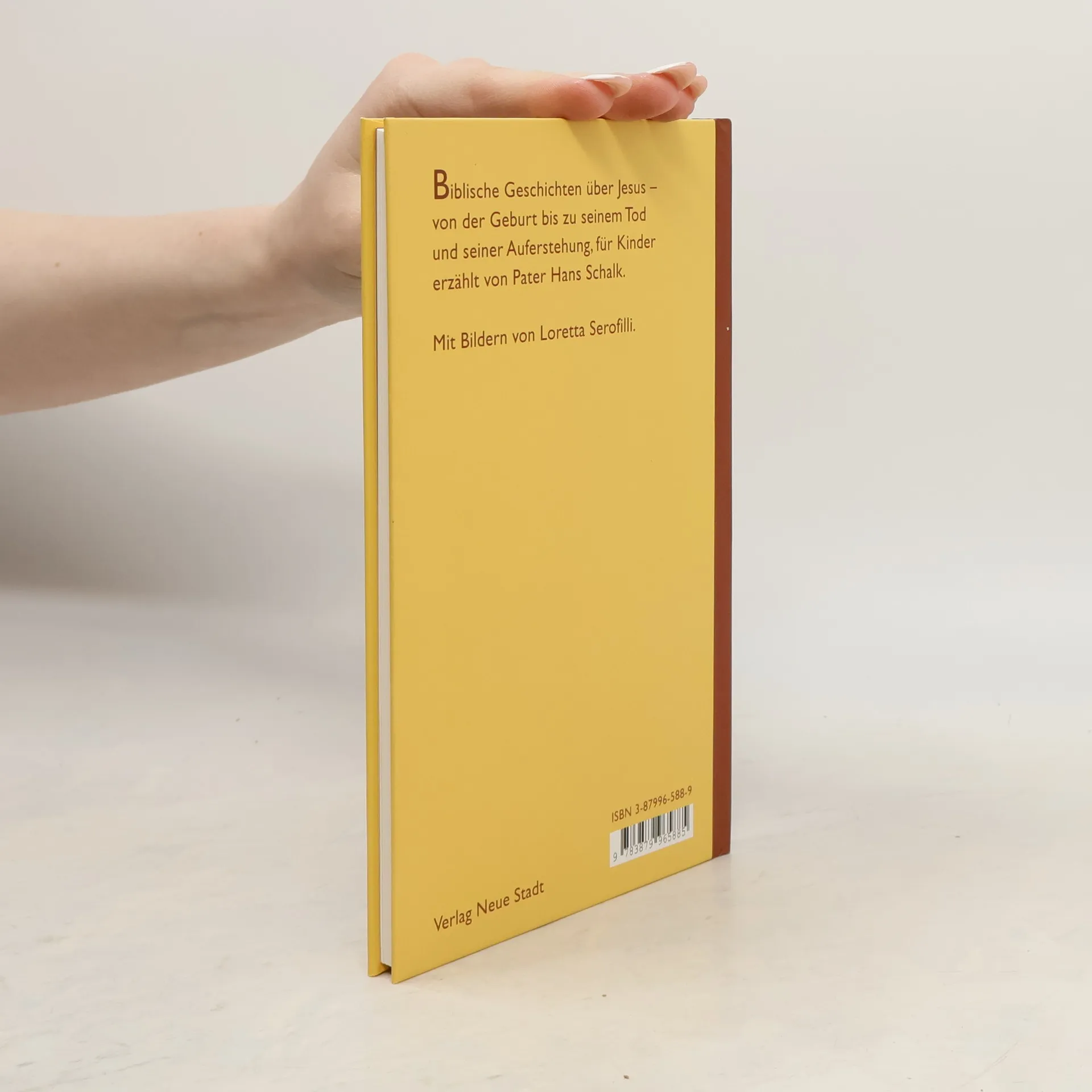 Die Geschichte des Jesus von Nazaret, bibelnah erzählt von Hans Schalk, Redemptorist und viele Jahre tätig in Ausbildung von Religionslehrern. In vierzig Kapiteln werden wichtige Momente des Lebens Jesu kindgerecht nacherzählt, in einer Form, die mit dem Text und der Sprache der Heiligen Schrift vertraut machen will. Die Zeichnungen der international bekannten Illustratorin Loretta Serofilli dienen der Veranschaulichung und dem Erinnern. Mit Landkarte (Israel zur Zeit Jesu) und Erläuterungen. Durchgehend vierfarbig, Fadenheftung.