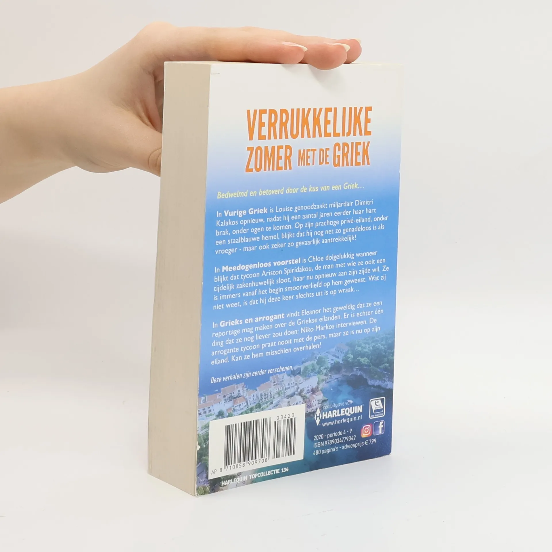 Bedwelmd en betoverd door de kus van een Griek... In Vurige Griek is Louise genoodzaakt miljardair Dimitri Kalakos opnieuw, nadat hij een aantal jaren eerder haar hart brak, onder ogen te komen. Op zijn prachtige privé-eiland, onder een staalblauwe hemel, blijkt dat hij nog net zo genadeloos is als vroeger - maar ook zeker zo gevaarlijk aantrekkelijk! In Meedogenloos voorstel is Chloe dolgelukkig wanneer blijkt dat tycoon Ariston Spiridakou, de man met wie ze ooit een tijdelijk zakenhuwelijk sloot, haar nu opnieuw aan zijn zijde wil. Ze is immers vanaf het begin smoorverliefd op hem geweest. Wat zij niet weet, is dat hij deze keer slechts uit is op wraak... In Grieks en arrogant vindt Eleanor het geweldig dat ze een reportage mag maken over de Griekse eilanden. Er is echter één ding dat ze nog liever zou doen: Niko Markos interviewen. De arrogante tycoon praat nooit met de pers, maar ze is nu op zijn eiland. Kan ze hem misschien overhalen? Deze verhalen zijn eerder verschenen.
