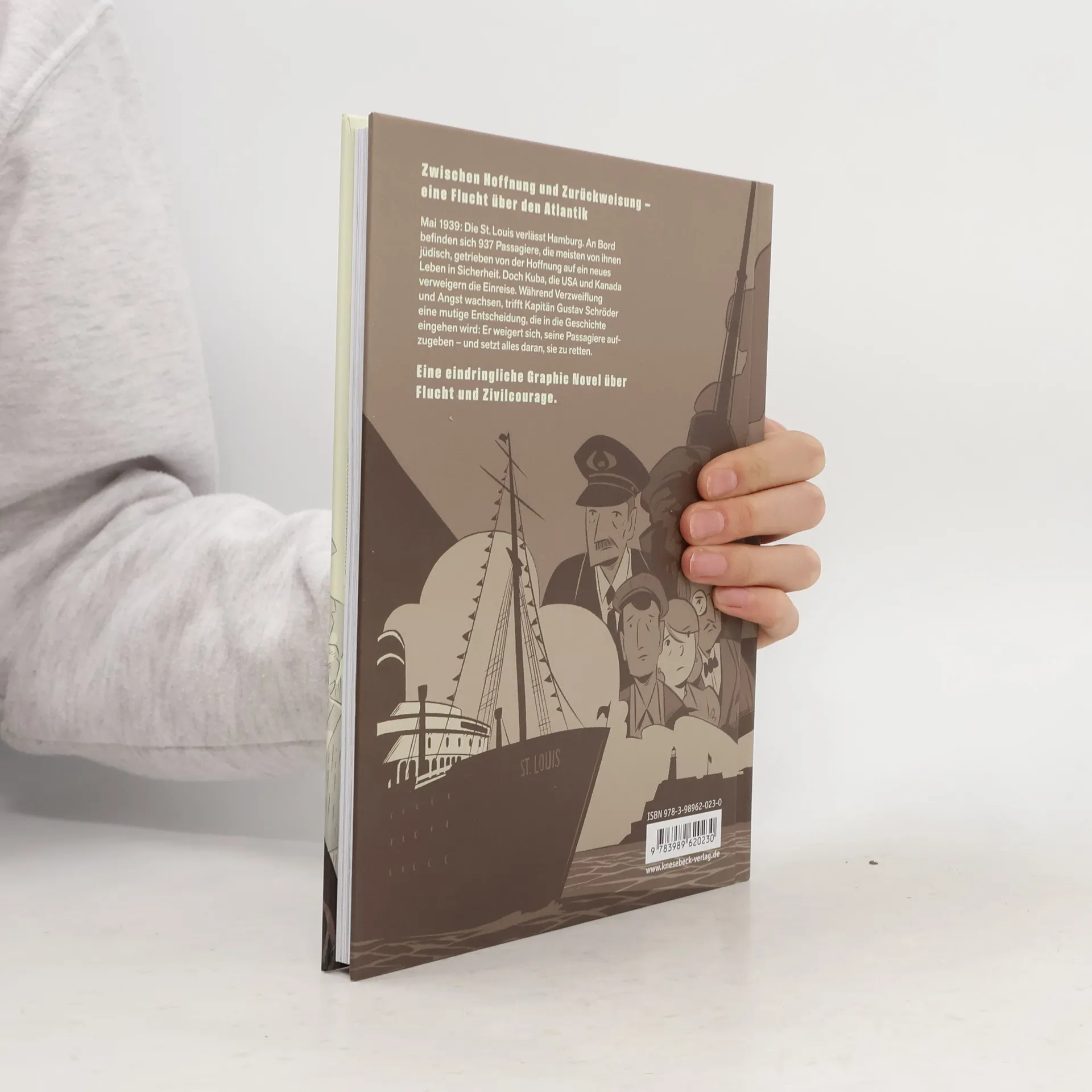 937 jüdische Passagiere verlassen mit der St. Louis den Hamburger Hafen – in der Hoffnung, in Kuba Zuflucht zu finden. Doch das Land weist sie ab. Ebenso die USA und Kanada. Kapitän Gustav Schröder setzt alles daran, einen sicheren Hafen zu finden. Doch wohin, wenn niemand sie aufnehmen will? Diese eindringliche Graphic Novel erzählt die wahre Geschichte von Flucht, Mut und Menschlichkeit: atmosphärisch, historisch fundiert und bewegend. Mit einem Zeitzeugeninterview eines Überlebenden und einem Vorwort des Shoah-Museums in Rom. Ein starkes Stück Erinnerungskultur, das zeigt, was Zivilcourage bedeutet – damals wie heute. Und warum es so wichtig ist hinzusehen.