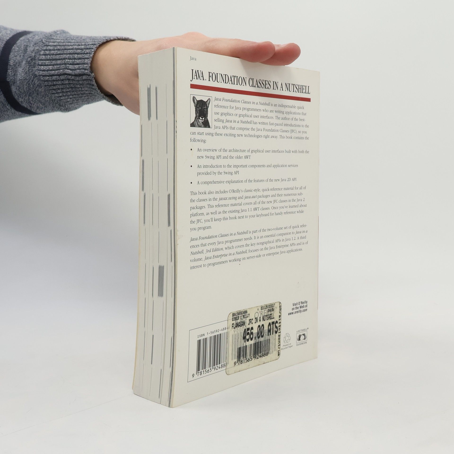 Java Foundation Classes in a Nutshell is an indispensable quick reference for Java programmers who are writing applications that use graphics or graphical user interfaces. The author of the bestselling Java in a Nutshell has written fast-paced introductions to the Java APIs that comprise the Java Foundation Classes (JFC), such as the Swing GUI components and Java 2D, so that you can start using these exciting new technologies right away. This book also includes O'Reilly's classic-style, quick-reference material for all of the classes in the javax.swing and java.awt packages and their numerous subpackages. This reference material covers all of the new JFC classes in the Java 2 platform, as well as the existing Java 1.1 AWT classes. Once you've learned about the JFC, you'll keep this book next to your keyboard for handy reference while you program. Java Foundation Classes in a Nutshell contains the This book is part of the two-volume set of quick references that every Java programmer needs. It is an essential companion to Java in a Nutshell, 3rd Edition , which covers the key nongraphical APIs in Java 1.2. A third volume, Java Enterprise in a Nutshell , focuses on the Java Enterprise APIs and is of interest to programmers working on server-side or enterprise Java applications.