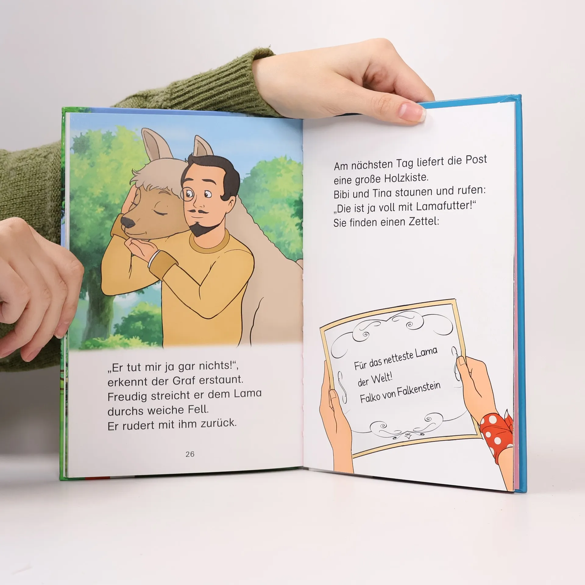 Diese spannende Geschichte für Leseanfänger begeistert Fans von Bibi und Tina in der ersten Klasse: Bibi und Tina bekommen das Lama Pablo zur Pflege. Als Graf von Falkenstein den Martinshof besucht, rennt Pablo ihm nach. Eine wilde Verfolgungsjagd beginnt. Der hilflose Graf flüchtet sich schließlich auf ein Ruderboot und plötzlich sitzt auch Pablo drin! Können Bibi und Tina das Verfolgungsrätsel lösen und werden der Graf und Pablo doch noch Freunde? Optimal abgestimmt auf das erste Lesevermögen durch ein ausgewogenes Verhältnis von Textmenge und Illustration, angepasster Schriftart, Schriftgröße und Zeilenlänge Mit Hufeisen-Quiz zur spielerischen Überprüfung des Textverständnisses Der Bibi-und-Tina-Lesepass spornt zu regelmäßigem Lesen an Die perfekte Kombination aus kompetenter Lesevermittlung und spannender Geschichte rund um Pferde, Freundschaft und Abenteuer!
