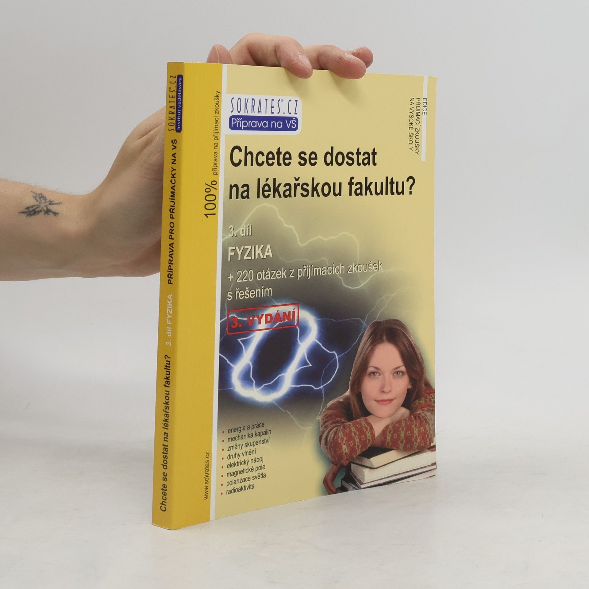 Kniha je jedinečnou pomůckou určenou uchazečům o studium na lékařských fakultách, obsahuje teoretické shrnutí problematiky + 220 testových otázek z minulých přijímacích zkoušek s řešením, a to z fyziky; určeno: lékařské fakulty UK v Praze, Lékařská fakulta MU v Brně, Lékařská fakulta UP v Olomouci, Veterinární a farmaceutická univerzita Brno a ostatní VŠ tohoto směru.