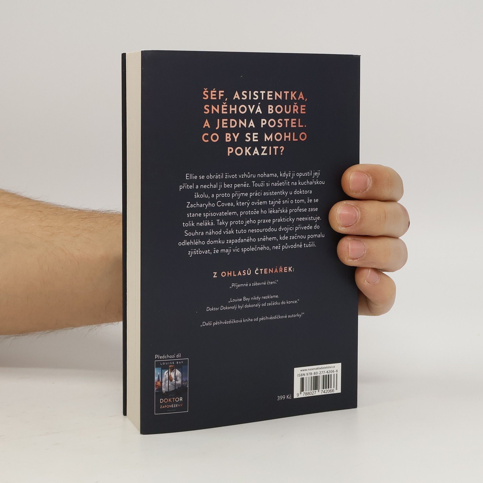 Šéf, jeho asistentka, sněhová bouře a jen jedna postel. Co by se mohlo pokazit?Říkají mu Doktor Dokonalý.Ale já mu spíš říkám Doktor Odměřený, Doktor Arogantní, nebo rovnou Doktor Jestli mě chcete vyhodit, tak to udělejte hned.Kdybych měla jinou možnost, dala bych výpověď. Jenže já tuhle práci nutně potřebuju. Takže když se naskytne příležitost udělat na něj dojem, neváhám a vlastnoručně mu doručím důležité dokumenty.Ano, vím, že je zrovna ubytovaný na odlehlém skotském ostrově, ale to zvládnu...Nebo si to aspoň myslím – dokud nezjistím, že mi zrušili trajekt zpátky, na ostrově není k sehnání ani jeden hotel, a navíc se na nás žene bouře.A tak jsem uvízla uprostřed ničeho se svým neskutečně pohledným šéfem, který sotva zná mé jméno, v malém domku s jednou ložnicí.Jenže zatímco venku sněží, jeho ledový pohled začíná tát. A na to, abychom se zahřáli, nakonec generátor vůbec nepotřebujeme.