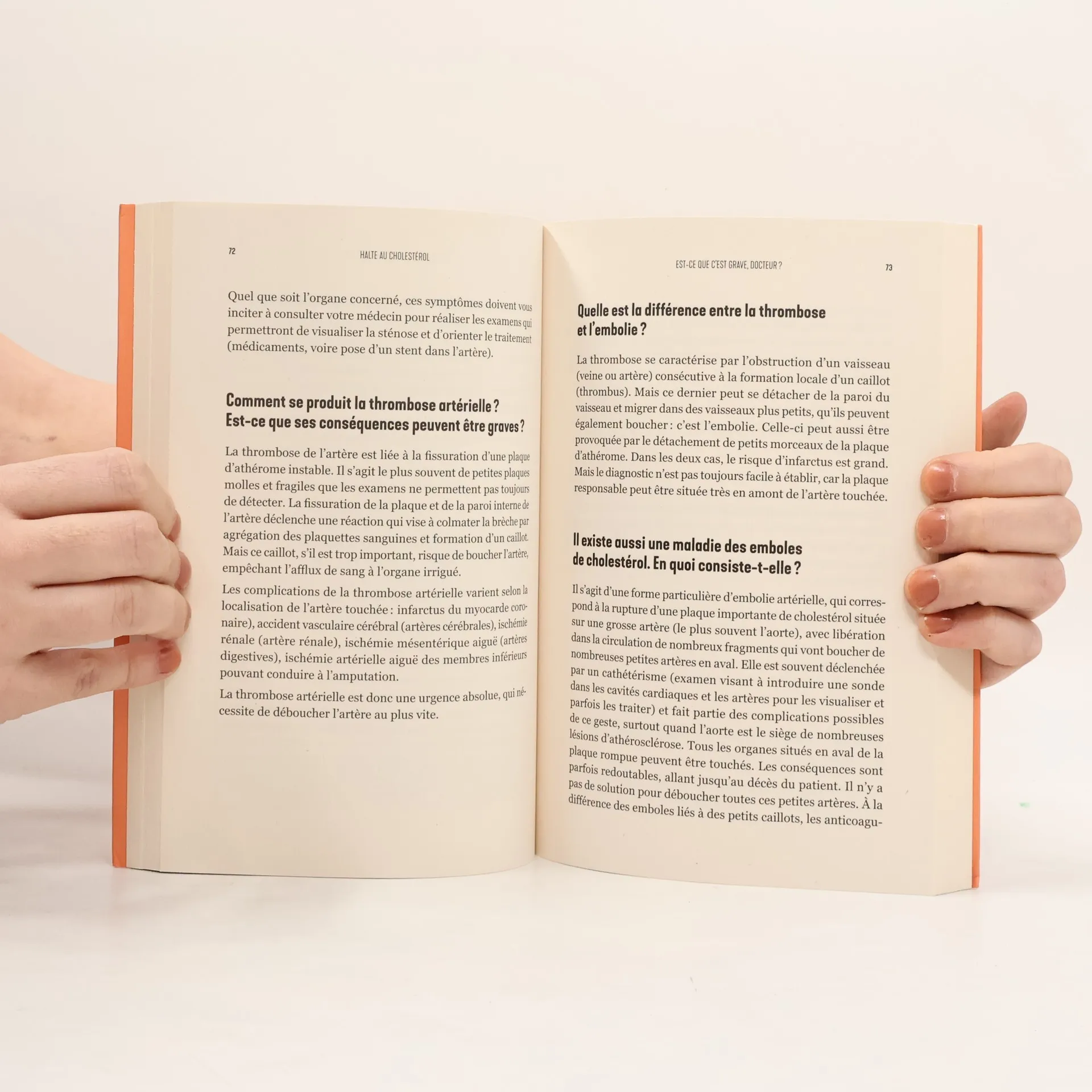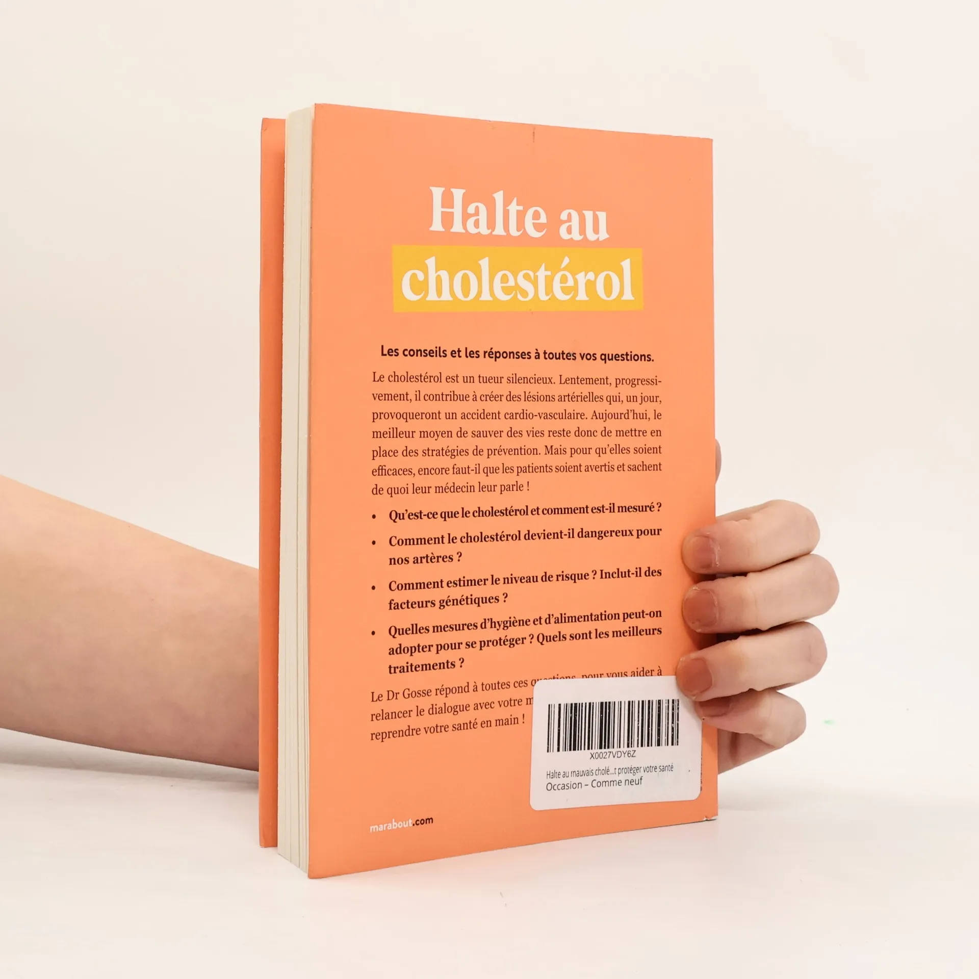 Les conseils et les réponses à toutes vos questions. Le cholestérol est un tueur silencieux. Lentement, progressivement, il contribue à créer des lésions artérielles qui, un jour, provoqueront un accident cardio-vasculaire. Aujourd'hui, le meilleur moyen de sauver des vies reste donc de mettre en place des stratégies de prévention. Mais pour qu'elles soient efficaces, encore faut-il que les patients soient avertis et sachent de quoi leur médecin leur parle !• Qu'est-ce que le cholestérol et comment est-il mesuré ?• Comment le cholestérol devient-il dangereux pour nos artères ?• Comment estimer le niveau de risque ? Inclut-il des facteurs génétiques ?• Quelles mesures d'hygiène et d'alimentation peut-on adopter pour se protéger ? Quels sont les meilleurs traitements ? Le Dr Gosse répond à toutes ces questions, pour vous aider à relancer le dialogue avec votre médecin traitant et surtout à reprendre votre santé en main !
