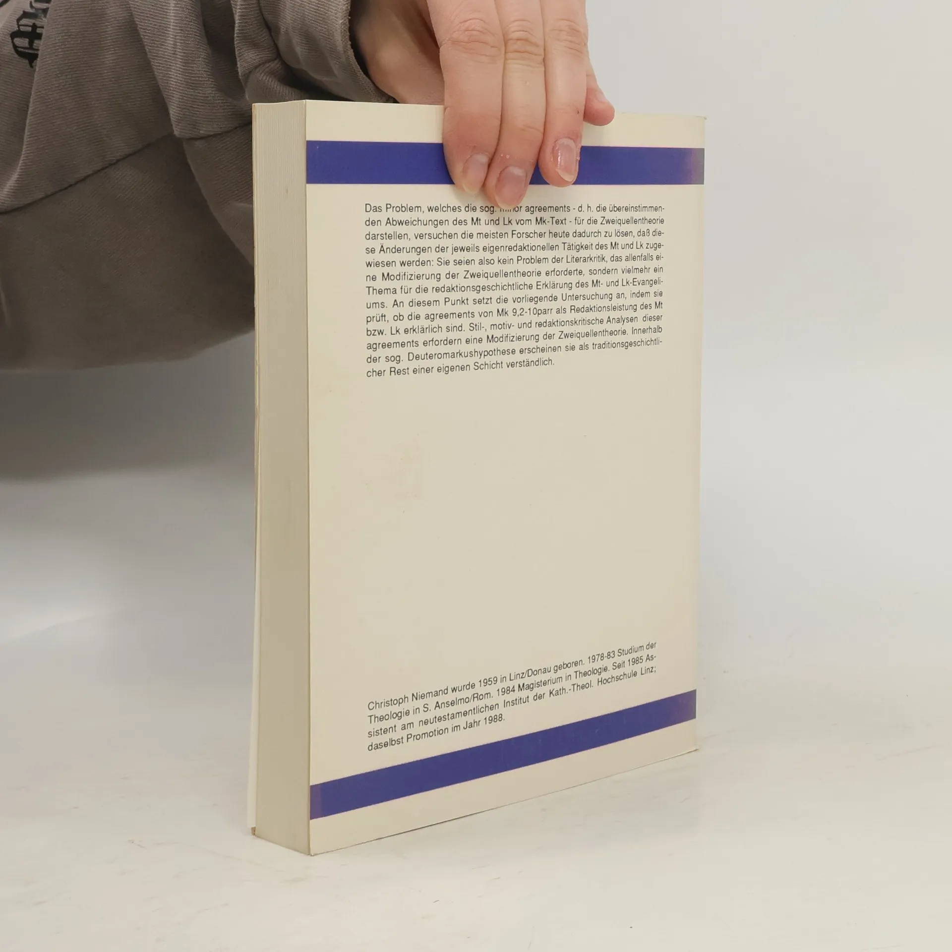 Das Problem, welches die sog. minor agreements - d.h. die übereinstimmenden Abweichungen des Mt und Lk vom Mk-Text - für die Zweiquellentheorie darstellen, versuchen die meisten Forscher heute dadurch zu lösen, dass diese Änderungen der jeweils eigenredaktionellen Tätigkeit des Mt und Lk zugewiesen werden. Sie seien also kein Problem der Literarkritik, das allenfalls eine Modifizierung der Zweiquellentheorie erforderte, sondern vielmehr ein Thema für die redaktionsgeschichtliche Erklärung des Mt- und Lk-Evangeliums. An diesem Punkt setzt die vorliegende Untersuchung an, indem sie prüft, ob die agreements von Mk 9,2-10parr als Redaktionsleistung des Mt bzw. Lk erklärlich sind.Stil-, motiv- und redaktionskritische Analysen dieser agreements erfordern eine Modifizierung der Zweiquellentheorie. Innerhalb der sog. Deuteromarkushypothese erscheinen sie als traditionsgeschichtlicher Rest einer eigenen Schicht verständlich.
