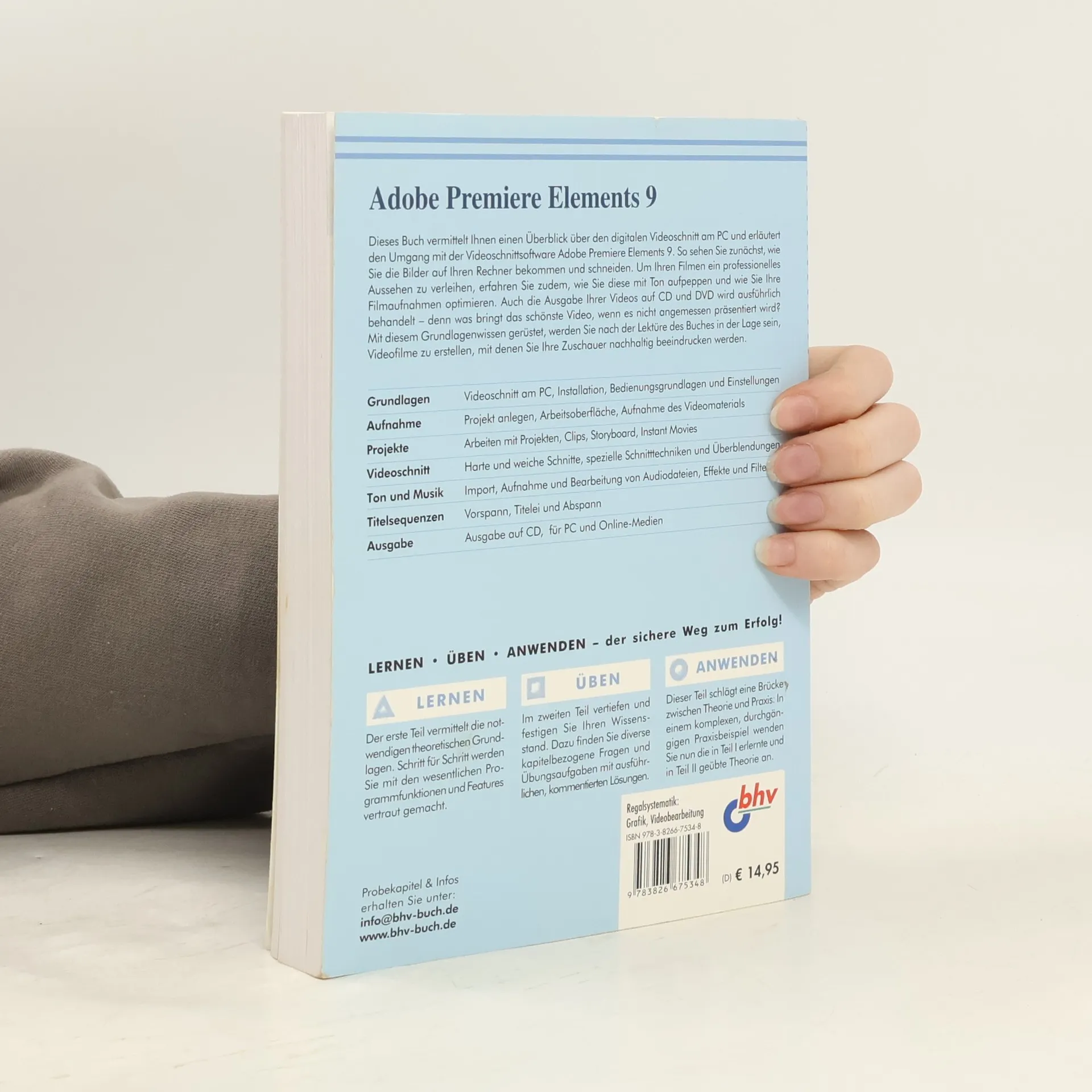 Dieses Buch vermittelt einen Überblick über den digitalen Videoschnitt am PC und erläutert den Umgang mit der beliebten Videoschnittsoftware Adobe Premiere Elements. Die Leser erfahren, wie sie die Bilder auf ihren Rechner bekommen und schneiden, wie diese mit Ton aufgepeppt werden und wie man die Filmaufnahmen optimiert. Auch die Ausgabe der Videos auf CD und DVD wird ausführlich behandelt.