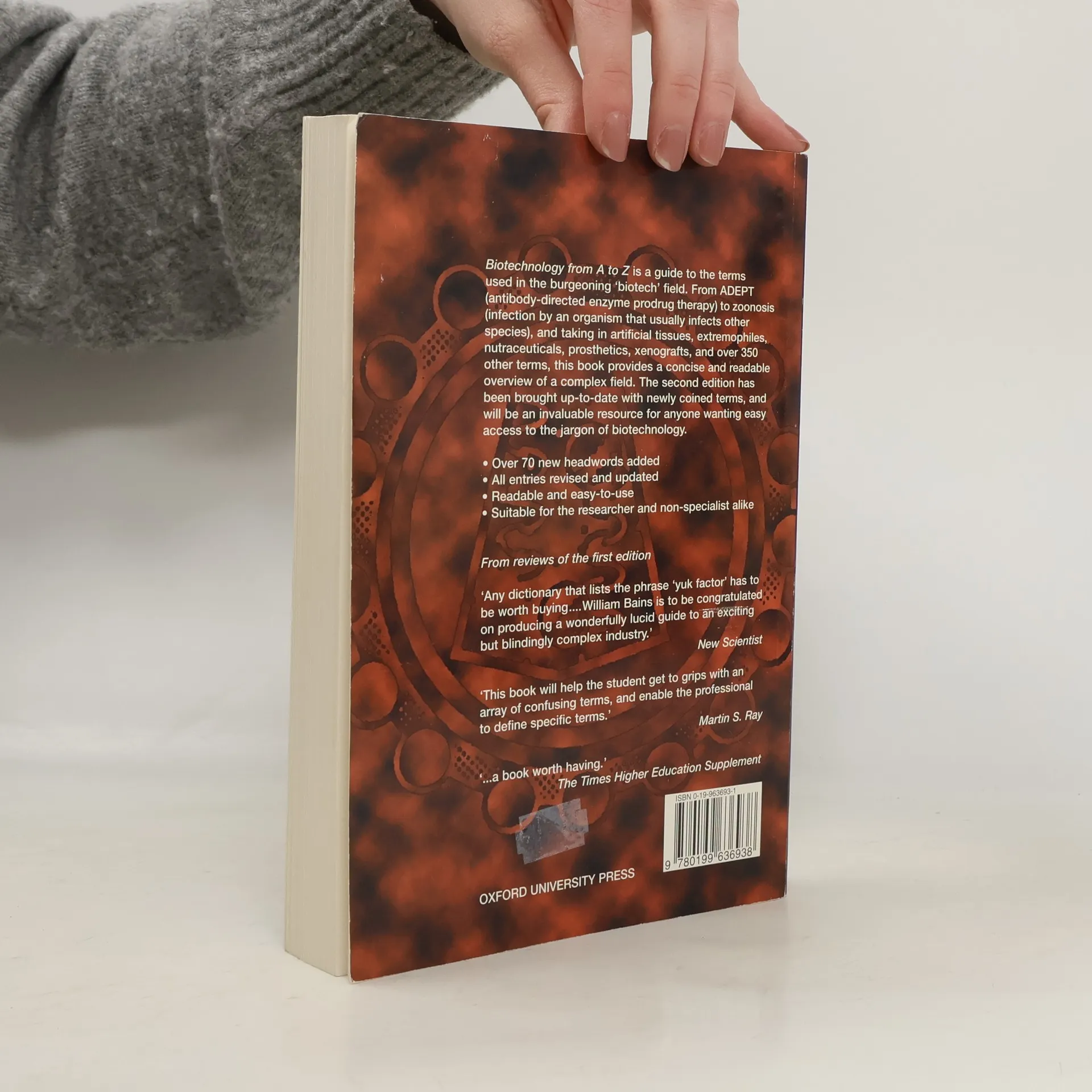 Biotechnology from A to Z is a guide to the terms used in the burgeoning 'biotech' field. From ADEPT (antibody-directed enzyme prodrug therapy) to zoonosis (infection by an organism that usually infects other species), and taking in artificial tissues, extremophiles, nutraceuticals, prosthetics, xenografts, and over 350 other terms, this book provides a concise and readable overview of a complex field. The second edition has been brought up-to-date with newly coined terms, and will be an invaluable resource for anyone wanting easy access to the jargon of biotechnology.