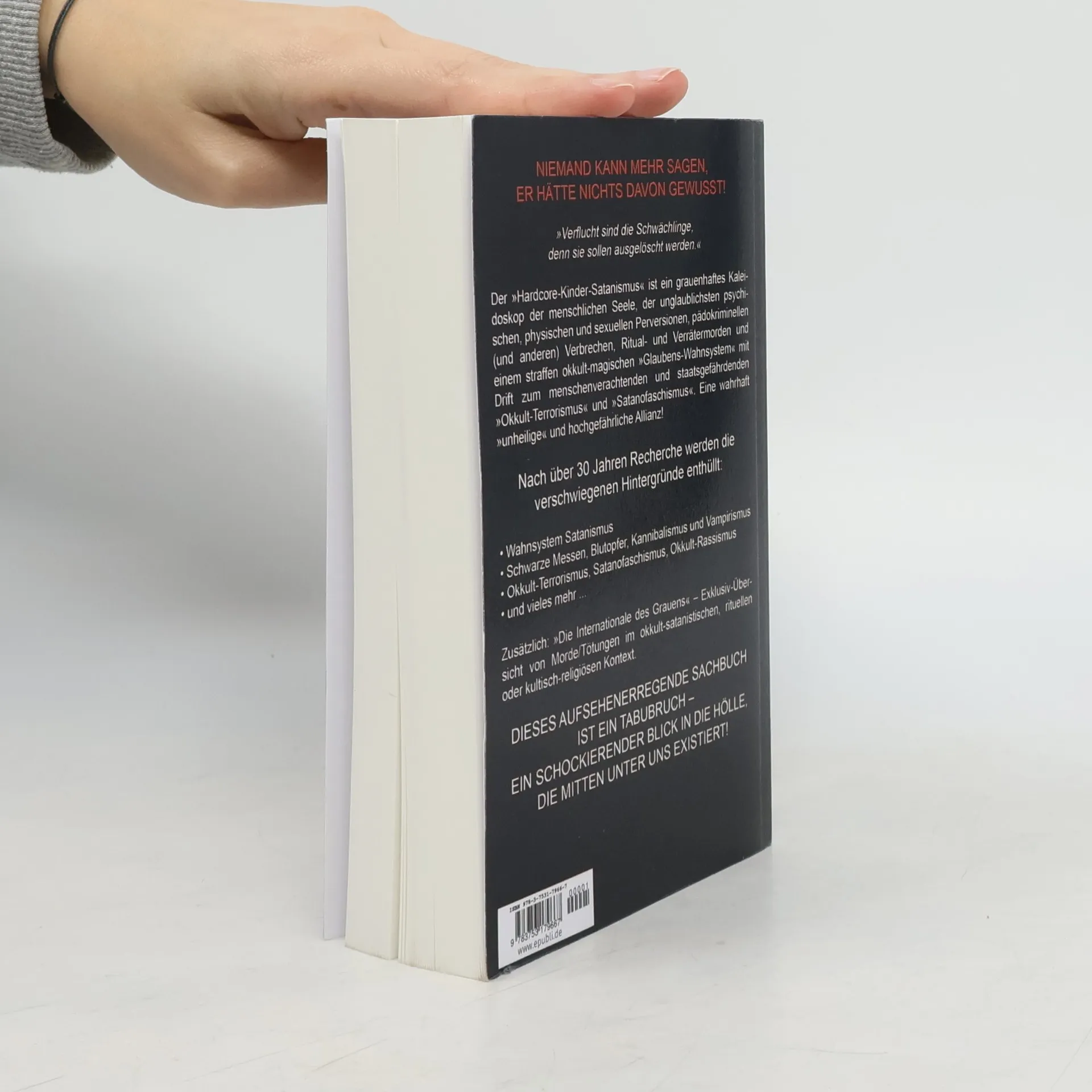 Das Buch beleuchtet den "Hardcore-Kinder-Satanismus" und deckt grausame Perversionen sowie Verbrechen wie Ritualmorde und Okkult-Terrorismus auf. Nach 30 Jahren Recherche werden verborgene Hintergründe und Fallbeispiele präsentiert. Es bietet einen schockierenden Einblick in eine gefährliche, menschenverachtende Allianz.