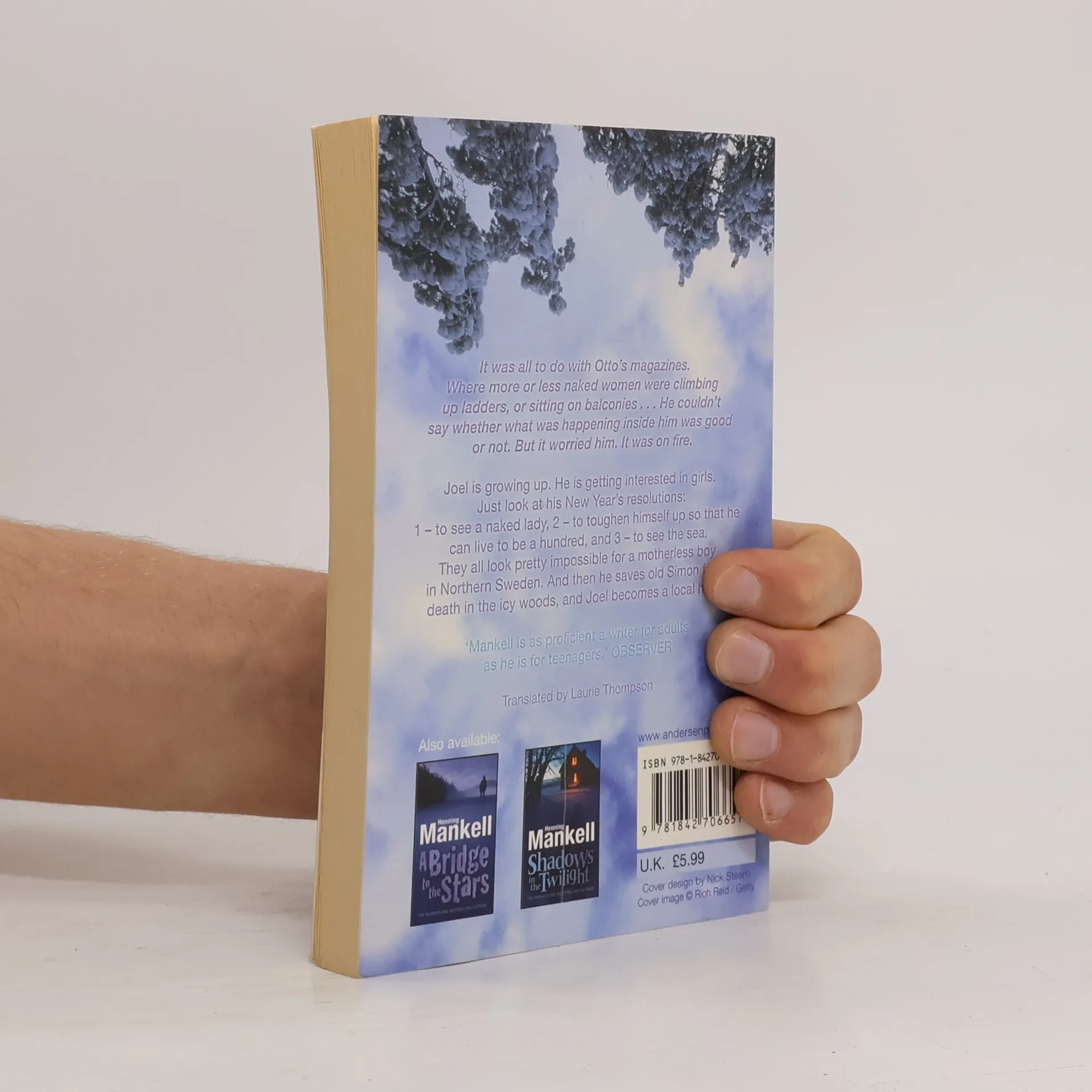 Joel is growing up. He is getting interested in girls. Just look at his New Year’s resolutions: 1 — to see a naked lady; 2 — to toughen himself up so that he can live to be a hundred; and 3 — to see the sea. They all look pretty impossible for a motherless boy in Northern Sweden. Especially as his sailor dad is keen to drown his sadness in drink, and all the local matrons are narrowly watching the pair of them.<br /><br />And then he saves old Simon from a frozen death in the woods, and Joel becomes a local hero.<br /><br />This is the third title in the popular series of children’s books from this master storyteller. The two previous ones are <b>A Bridge to the Stars</b> and <b>Shadows in the Twilight</b>.