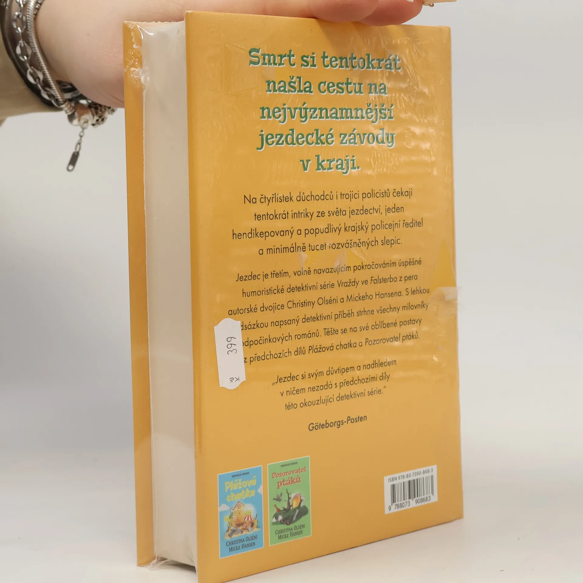 Nejvýznamnější událost švédského jezdectví, Falsterbo Horse Show, začíná. Mladý a talentovaný Leopold Gyllenstierna, favorit publika a kandidát na olympijské místo, přijíždí na svém koni Baronovi. Po třetí překonané překážce však nečekaně padá mrtev k zemi. Policisté Lisa Starková a Mårten Lind z skanörské policejní stanice zjistí, že Leopold nezemřel přirozenou smrtí, a započnou napínavé vyšetřování vraždy. Pomoc jim poskytne státní zástupce Fredrik Hjort a energický důchodce Egon. Vrah brzy udeří znovu a nad idylkou poloostrova Falsterbo se stahují temná mračna. Kdo je tajemný vrah v jezdectví? Skanörská trojice policistů musí jednat rychle. V Uličce Lásky panuje napětí, i když Ragnar si užívá nový život s manželkou Märtou. Egonova sousedka Elisabeth pozve na návštěvu svou lásku z mládí, elegantního Françoise, a Egon musí zasáhnout, aby udržel pořádek. Čtveřice důchodců a trio policistů čelí intrikám ze světa jezdectví, nevyrovnanému krajskému policejnímu řediteli a rozvášněným slepicím. Příběh je třetím volně navazujícím pokračováním humoristické detektivní série Vraždy ve Falsterbo od Christiny Olséni a Mickeho Hansena, který potěší všechny milovníky odpočinkových románů. Těšte se na oblíbené postavy z předchozích dílů.