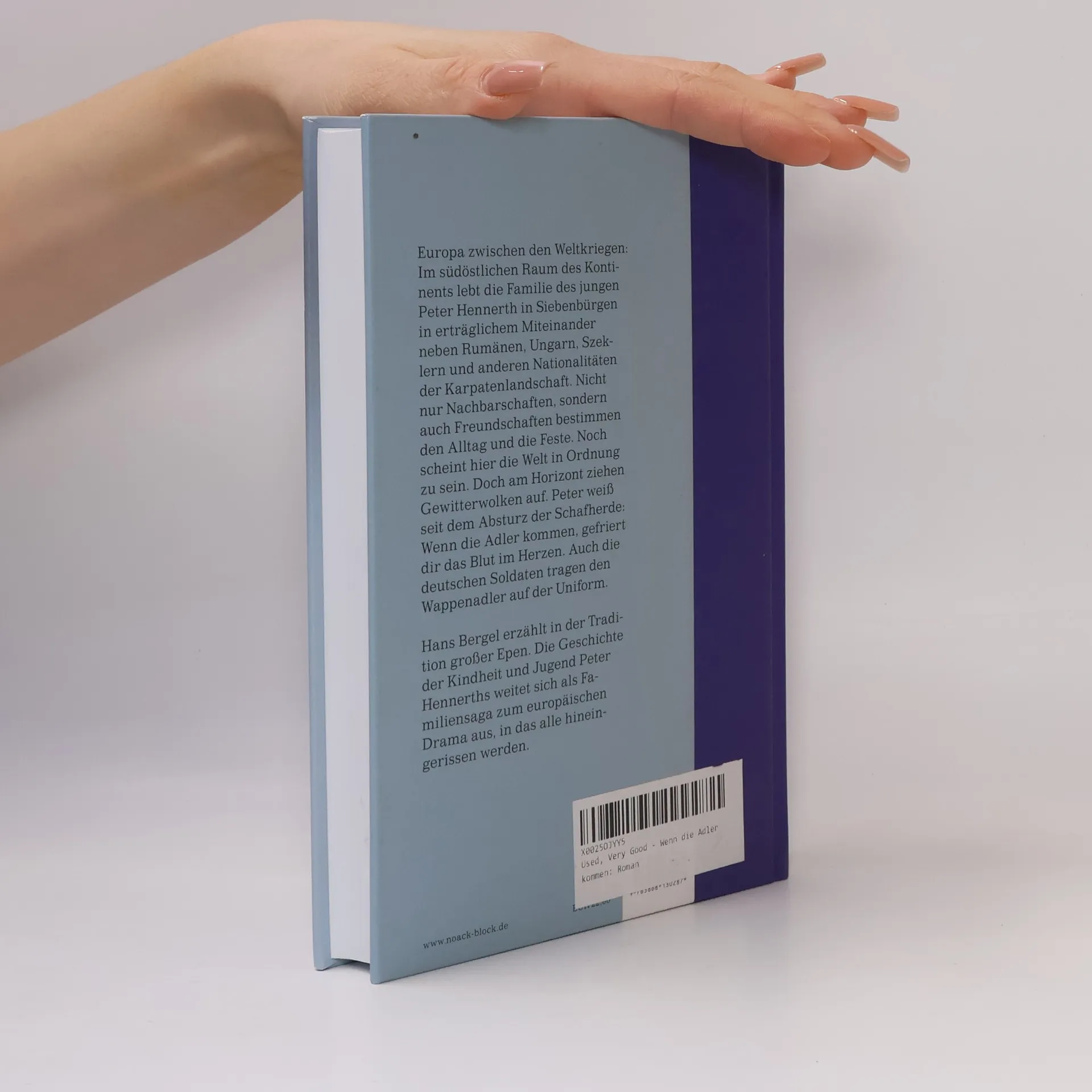 Europa zwischen den Welt kriegen: Im südöstlichen Raum des Kontinents lebt die Familie des jungen Peter Hennerth in Siebenbürgen in erträglichem Miteinander neben Rumänen, Ungarn, Szeklern und anderen Nationalitäten der Karpatenlandschaft. Nicht nur Nachbarschaften, sondern auch Freundschaften bestimmen den Alltag und die Feste. Noch scheint hier die Welt in Ordnung zu sein. Doch am Horizont ziehen Gewitterwolken auf. Peter weiß seit dem Absturz der Schafherde: Wenn die Adler kommen, gefriert dir das Blut im Herzen. Auch die deutschen Soldaten tragen den Wappenadler auf der Uniform. Hans Bergel erzählt in der Tradition großer Epen. Die Geschichte der Kindheit und Jugend Peter Hennerths weitet sich als Familiensaga zum europäischen Drama aus, in das alle hineingerissen werden.
