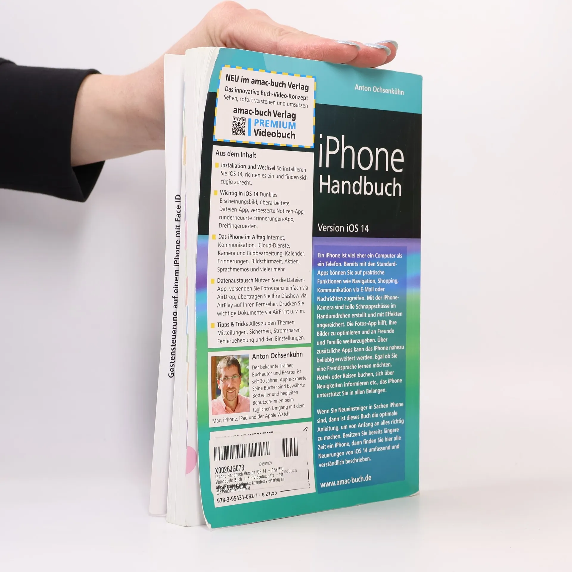 Jetzt neu im amac-buch Verlag Das innovative Sehen, sofort verstehen und umsetzen. Buch + 4 h Videotutorials Mit jeder neuen iOS-Version wird die Bedienung eines iPhone-Modells noch einfacher und vor allem vielseitiger. Mit der aktuellen Version iOS 14 sind wieder eine Menge nützlicher Funktionen hinzugekommen, die man bereits nach kurzer Eingewöhnungszeit nicht mehr missen möchte. Besonders hervorzuheben ist hier App-Library, mit der das iPhone ohne Ihr Zutun alle installierten Apps automatisch nach Themen und Einsatzhäufigkeit sortiert. Zudem wurden Dinge wie Spotlight, Siri, Nachrichten etc. kräftig überarbeitet und bieten noch mehr Funktionen. Via Übersetzen ist es nun ein Einfaches, Texte in andere Sprachen zu übersetzen. In diesem Buch finden Sie als iPhone-Nutzer alle Funktionen nachvollziehbar beschrieben. Viele nummerierte Bildschirmfoto, Schritt-für-Schritt-Anleitungen und Lern-Videos helfen Ihnen, sofort alles in die Praxis umzusetzen. Wenn Sie neuer iPhone-Besitzer sind, dann ist das Buch perfekt für Sie. Aus dem - Installation und Update auf iOS 14 - Datenabgleich mit einem Mac- oder Windows-Rechner - Alles im Ü Widgets, Mitteilungen, Heute-Ansicht, Bildschirmzeit - Produktiv sein mit Erinnerungen, Mail, Kalender - Neue Funktionen in Safari, Fitness, Home, etc. - Verbesserungen in der Karten-, Nachrichten- und App-Store-App Anton Ochsenkühn ist ein international anerkannter Mac-, iPhone- und iPad-Experte. Er hat 1988 seinen ersten Mac bedient und ist seither von den Geräten aus dem Hause Apple begeistert. Als erfahrener Trainer und Consultant kennt er die Bedürfnisse der Anwender. Alle seine Titel sind Bestseller und sollten eigentlich jedem Apple-Gerät beiliegen. Sein 'Aus der Praxis - für die Praxis'. So entstehen Publikationen, die dem Leser in jeder Situation einen echten Mehrwert bringen. Das sagt die Fachpresse zum 'Sämtliche Schritte werden mit eingängigen Illustrationen veranschaulicht. Das macht das Lesen und Ausprobieren kurzweilig und zu einem Vergnügen. Wer seine Computerbücher liest, wird viele ungeahnte Möglichkeiten der Geräte entdecken' (»Augsburger Allgemeine«) Das sagen Leser zu seinen Bü »Ihr Buch hat mir ein Freund empfohlen. Nun kann ich von Anfang an alles richtig machen. Ich hätte gar nicht gedacht, dass ein Betriebssystem für einen Computer soviel Spaß machen kann.« »Ich muss Ihnen ein Kompliment Ich habe noch nie ein EDV-Buch gelesen, mit dem ich so zufrieden bin. Sie erklären alles auf eine leichte und anschauliche Weise, so dass ich als Neuling auf dem iPhone nun schon Dinge kann, von denen ich gar nicht wußte, dass diese mit so einem Gerät überhaupt möglich sind.«