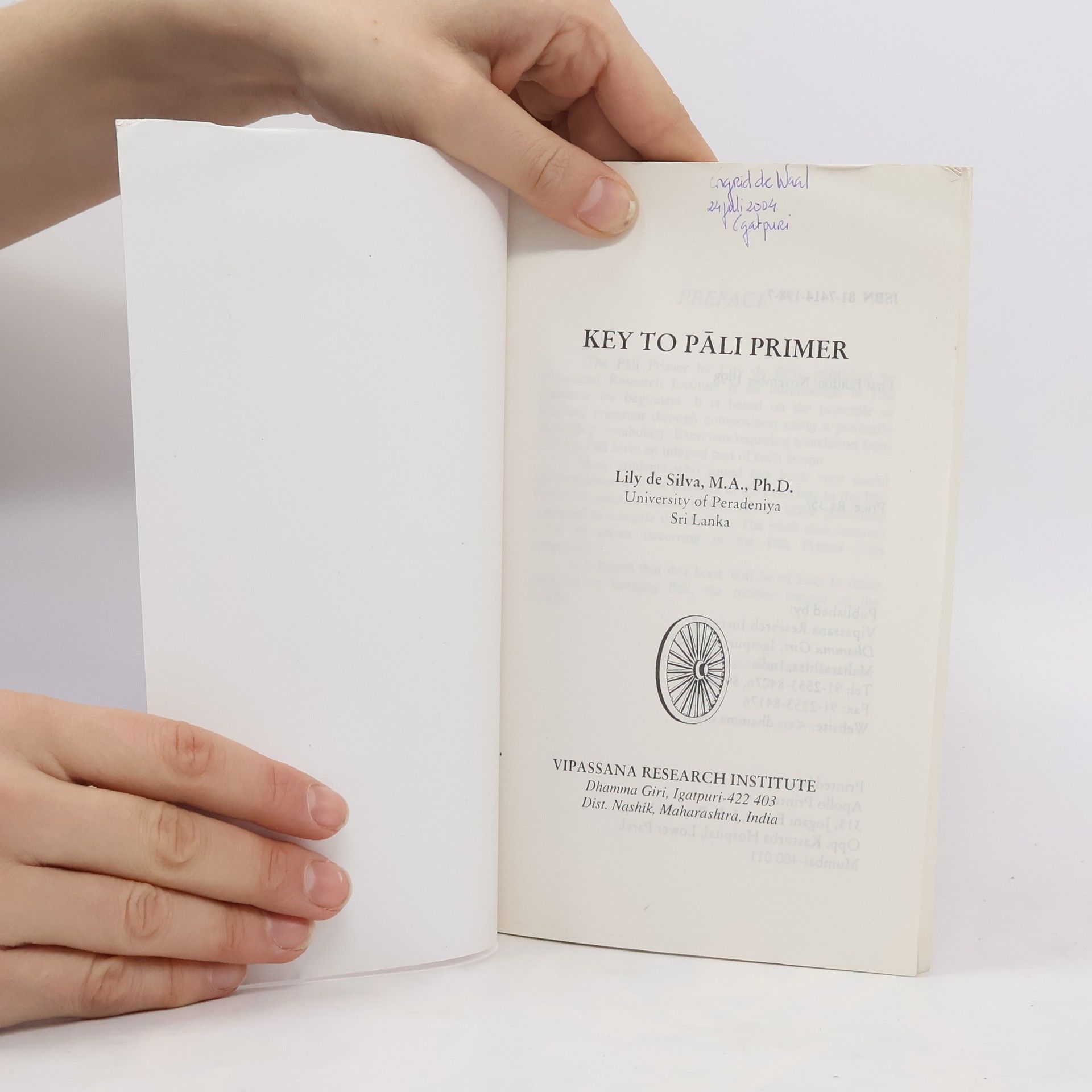 Key To Pali Primer, Lily de Silva