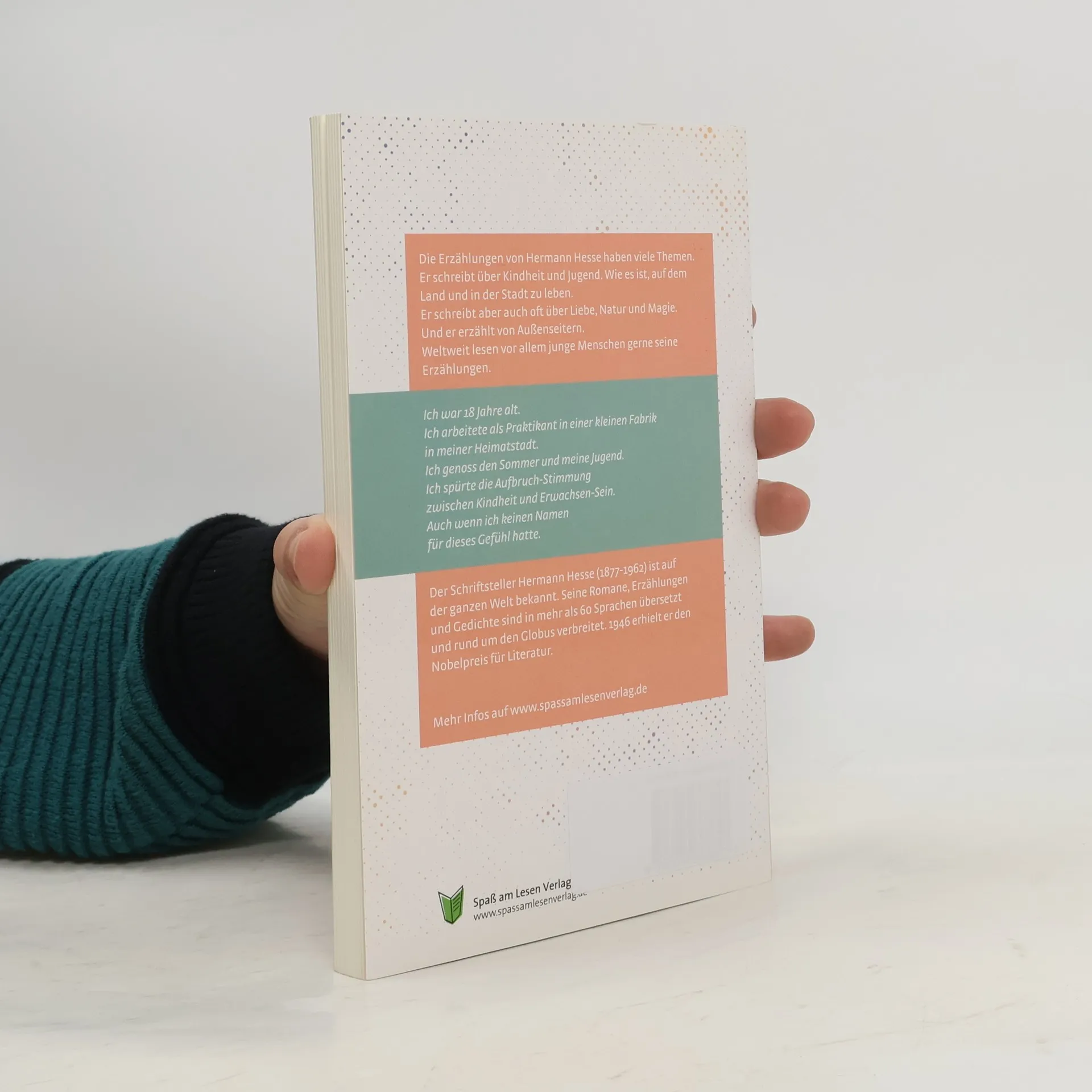 Die Erzählungen von Hermann Hesse haben viele Themen. Er schreibt über Kindheit und Jugend. Wie es ist, auf dem Land und in der Stadt zu leben. Er schreibt aber auch oft über Liebe, Natur und Magie. Und er erzählt von Außenseitern. Weltweit lesen vor allem junge Menschen gerne seine Erzählungen. Ich war 18 Jahre alt. Ich arbeitete als Praktikant in einer kleinen Fabrik in meiner Heimatstadt. Ich genoss den Sommer und meine Jugend. Ich spürte die Aufbruch-Stimmung zwischen Kindheit und Erwachsen-Sein. Auch wenn ich keinen Namen für dieses Gefühl hatte. Der Schriftsteller Hermann Hesse (1877-1962) ist auf der ganzen Welt bekannt. Seine Romane, Erzählungen und Gedichte sind in mehr als 60 Sprachen übersetzt und rund um den Globus verbreitet. 1946 erhielt er den Nobelpreis für Literatur.