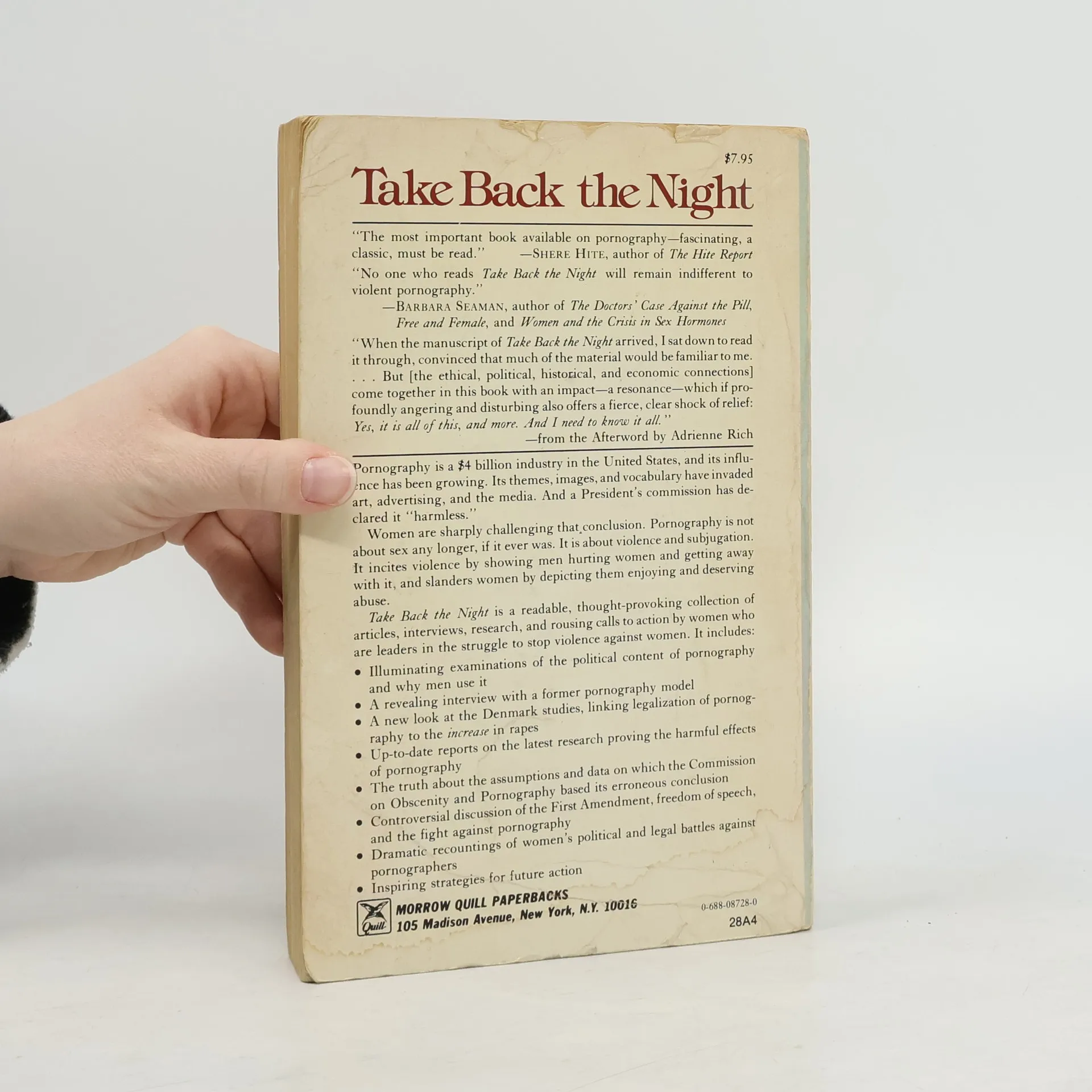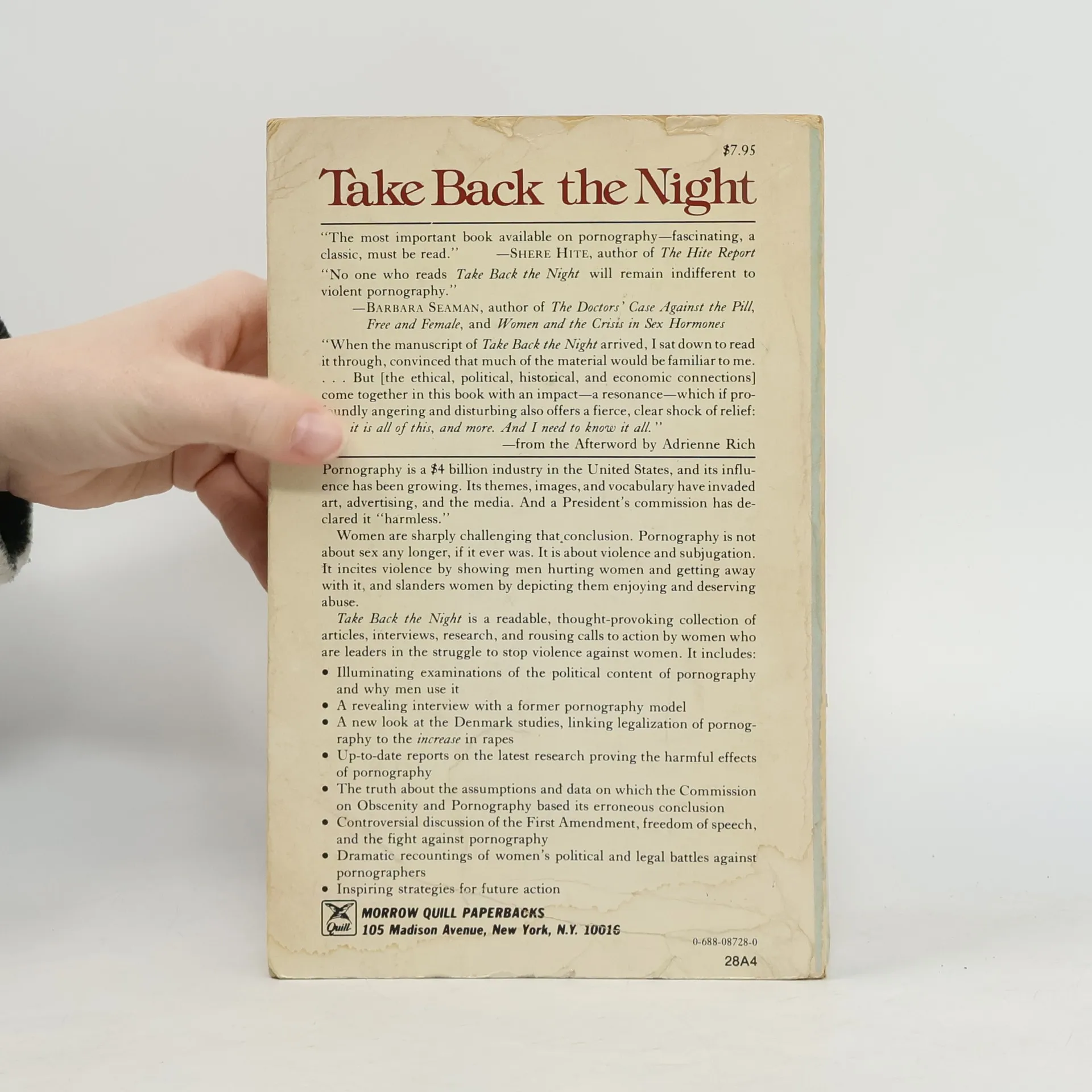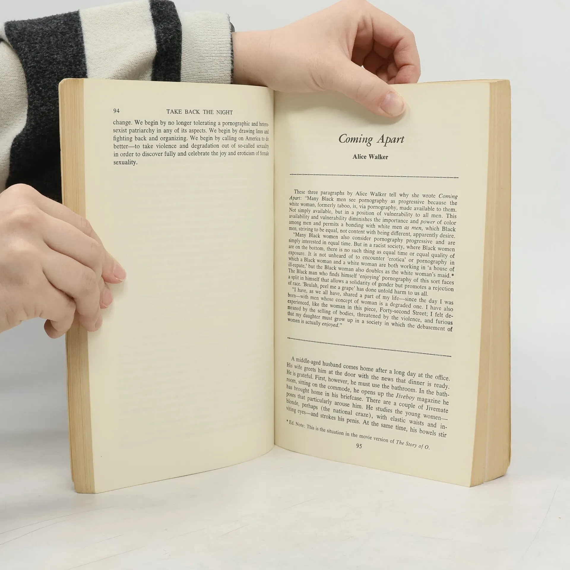Take Back the Night, Laura Lederer, Adrienne Rich, Kathleen Barry, Pauline Bartel, Judith Bat-Ada, Susan Brownmiller, Megan Boler, Irene Diamond, Charlotte Bunch, Phyllis Chesler, Martha Gever, Andrea Dworkin, Tracey A. Gardner, Ann Jones, Margaret Jorza, Marg Hall, Beverly LaBelle, Robin Lake, Wendy Kaminer, Helen E. Longino, Audre Lorde, Robin Morgan, Marge Piercy, Susan Lurie, Diana E. H. Russell, Gloria Steinem, Florence Rush, Luisah Teish, Alice Walker, Britta Stövling, Robin Yeamans