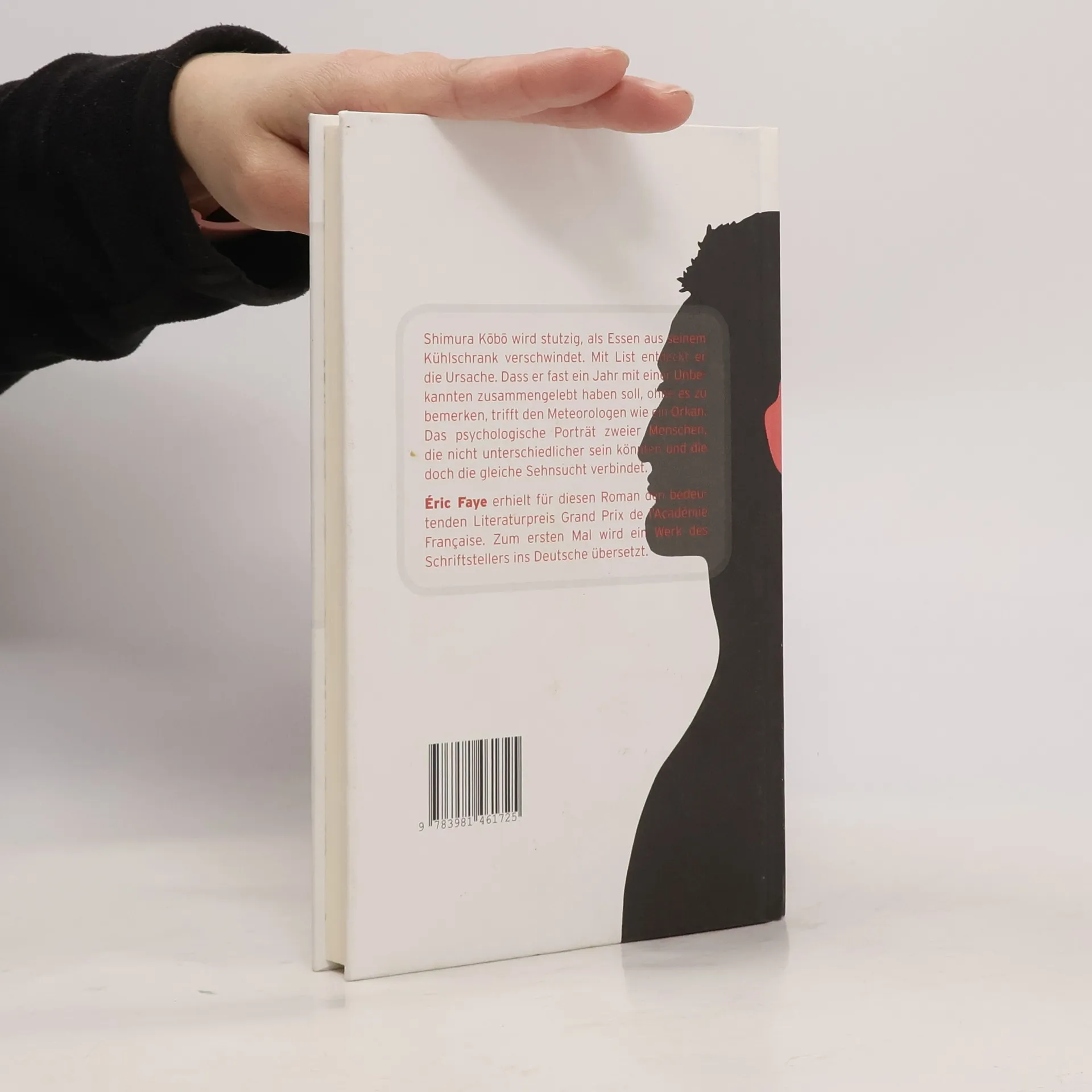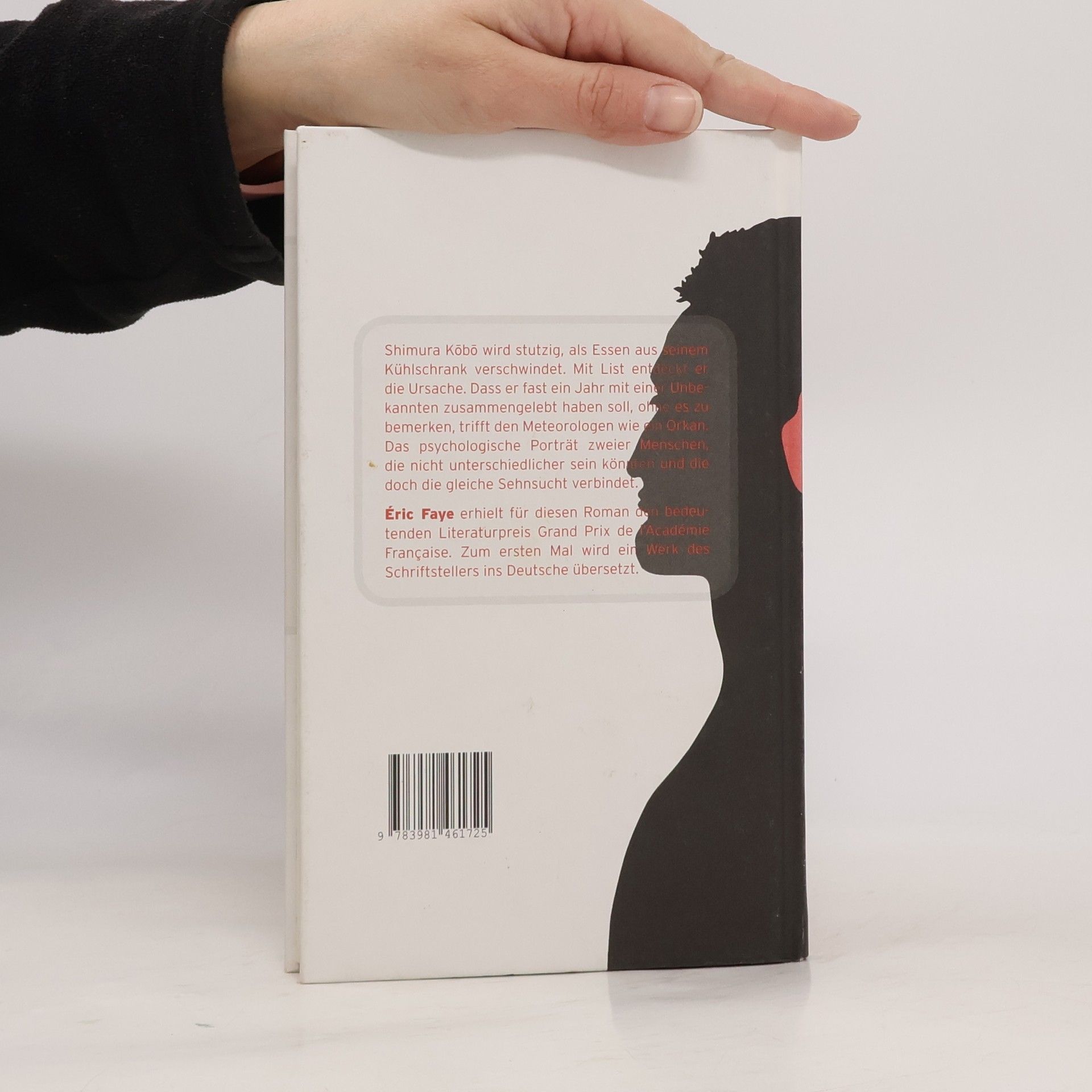 Shimura Kobo wird stutzig, als Essen aus seinem Kühlschrank verschwindet. Mit List entdeckt er die Ursache. Dass er fast ein Jahr mit einer Unbekannten zusammengelebt haben soll, ohne es zu bemerken, trifft den Meteorologen wie ein Orkan. Das psychologische Porträt zweier Menschen, die nicht unterschiedlicher sein könnten und die doch die gleiche Sehnsucht verbindet. Éric Faye erhielt für diesen Roman den bedeutenden Literaturpreis Grand Prix de l’Académie Française. Zum ersten Mal wird ein Werk des Schriftstellers ins Deutsche übersetzt.