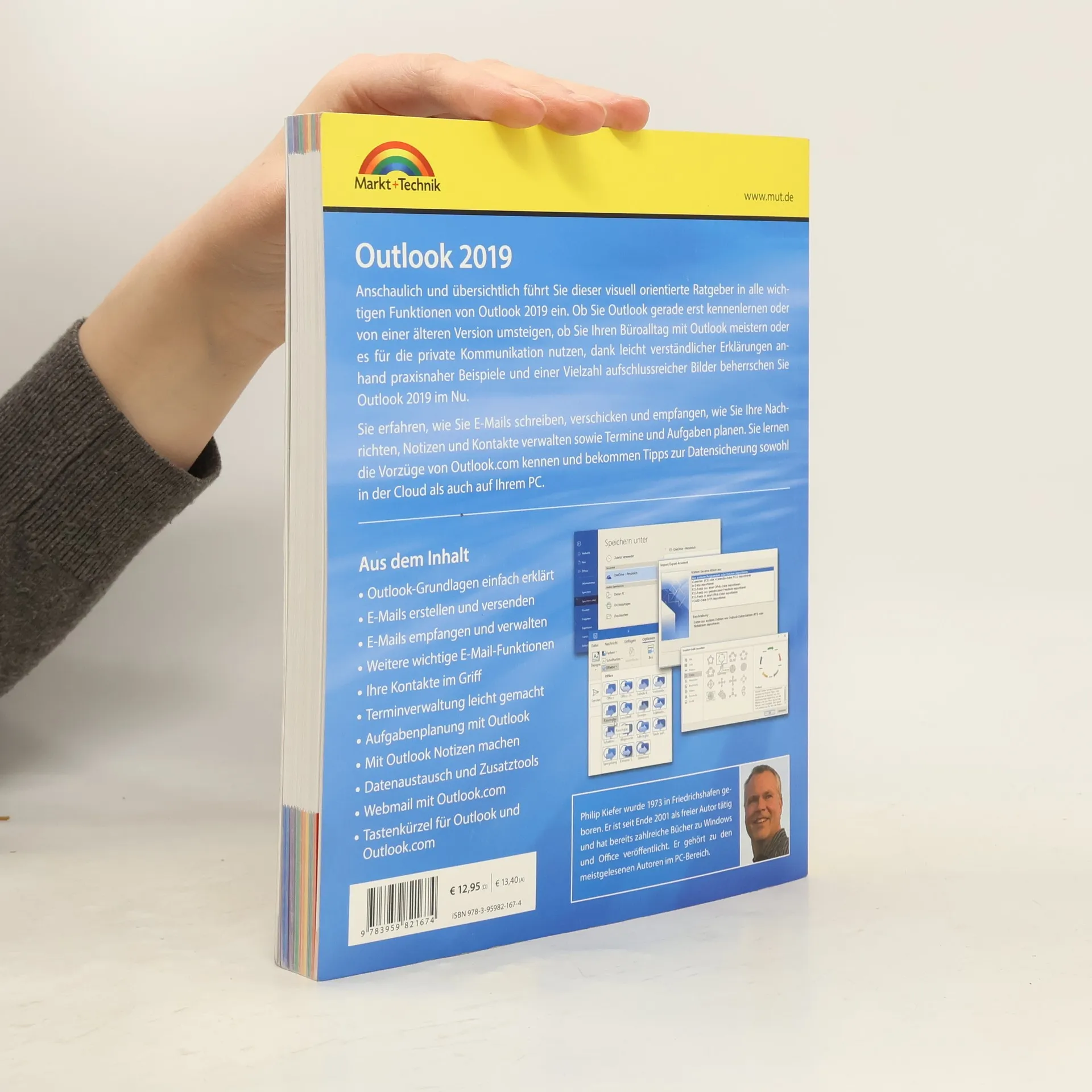 Dieser visuell orientierte Ratgeber führt anschaulich in alle wichtigen Funktionen von Outlook 2019 ein. Egal, ob Sie neu sind oder von einer älteren Version umsteigen, lernen Sie, wie Sie Ihren Büroalltag oder die private Kommunikation mit Outlook meistern können. Die leicht verständlichen Erklärungen und praxisnahen Beispiele helfen Ihnen, Outlook 2019 schnell zu beherrschen. Sie erfahren, wie Sie E-Mails schreiben, verschicken und empfangen, sowie Nachrichten, Notizen und Kontakte verwalten und Termine und Aufgaben planen. Zudem werden die Vorzüge von Outlook.com vorgestellt, und Sie erhalten Tipps zur Datensicherung in der Cloud und auf Ihrem PC. Ein Download-Link zu 111 Outlook-Vorlagen für verschiedene Themen wie Geburtstage, Hochzeiten und Geschäftsbriefe ist ebenfalls enthalten. Die Themen umfassen: Grundlagen von Outlook 2019, E-Mails erstellen und verwalten, wichtige E-Mail-Funktionen, Kontaktmanagement, Terminverwaltung, Aufgabenplanung, Notizen, Datenaustausch und -sicherung sowie Webmail mit Outlook.com und nützliche Tastenkombinationen. Der Autor, Philip Kiefer, ist ein erfahrener freier Autor, der zahlreiche Bücher zu Windows und Office verfasst hat und zu den meistgelesenen Autoren im PC-Bereich zählt.