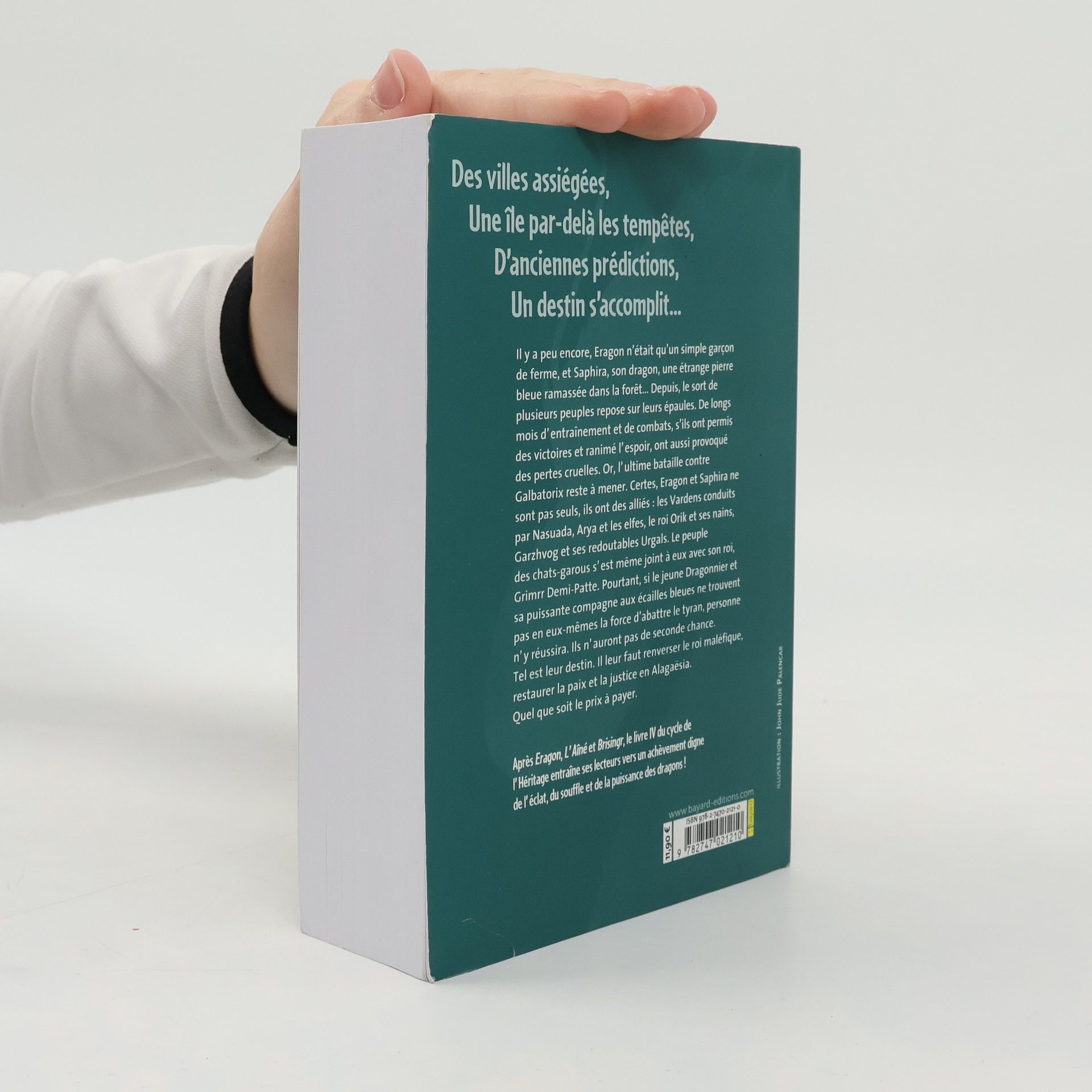Il y a peu encore, Eragon n'était qu'un simple garçon de ferme, et Saphira, son dragon, une étrange pierre bleue ramassée dans la forêt... Depuis, le sort de plusieurs peuples repose sur leurs épaules. De longs mois d'entraînement et de combats, s'ils ont permis des victoires et ranimé l'espoir, ont aussi provoqué des pertes cruelles. Or, l'ultime bataille contre Galbatorix reste à mener. Certes, Eragon et Saphira ne sont pas seuls, ils ont des alliés : les Vardens conduits par Nasuada, Arya et les elfes, le roi Orik et ses nains, Garzhvog et ses redoutables Urgals. Le peuple des chats-garous s'est même joint à eux avec son roi, Grimrr Demi-Patte. Pourtant, si le jeune Dragonnier et sa puissante compagne aux écailles bleues ne trouvent pas en eux-mêmes la force d'abattre le tyran, personne n'y réussira. Ils n'auront pas de seconde chance. Tel est leur destin. Il leur faut renverser le roi maléfique, restaurer la paix et la justice en Alagaësia. Quel que soit le prix à payer.