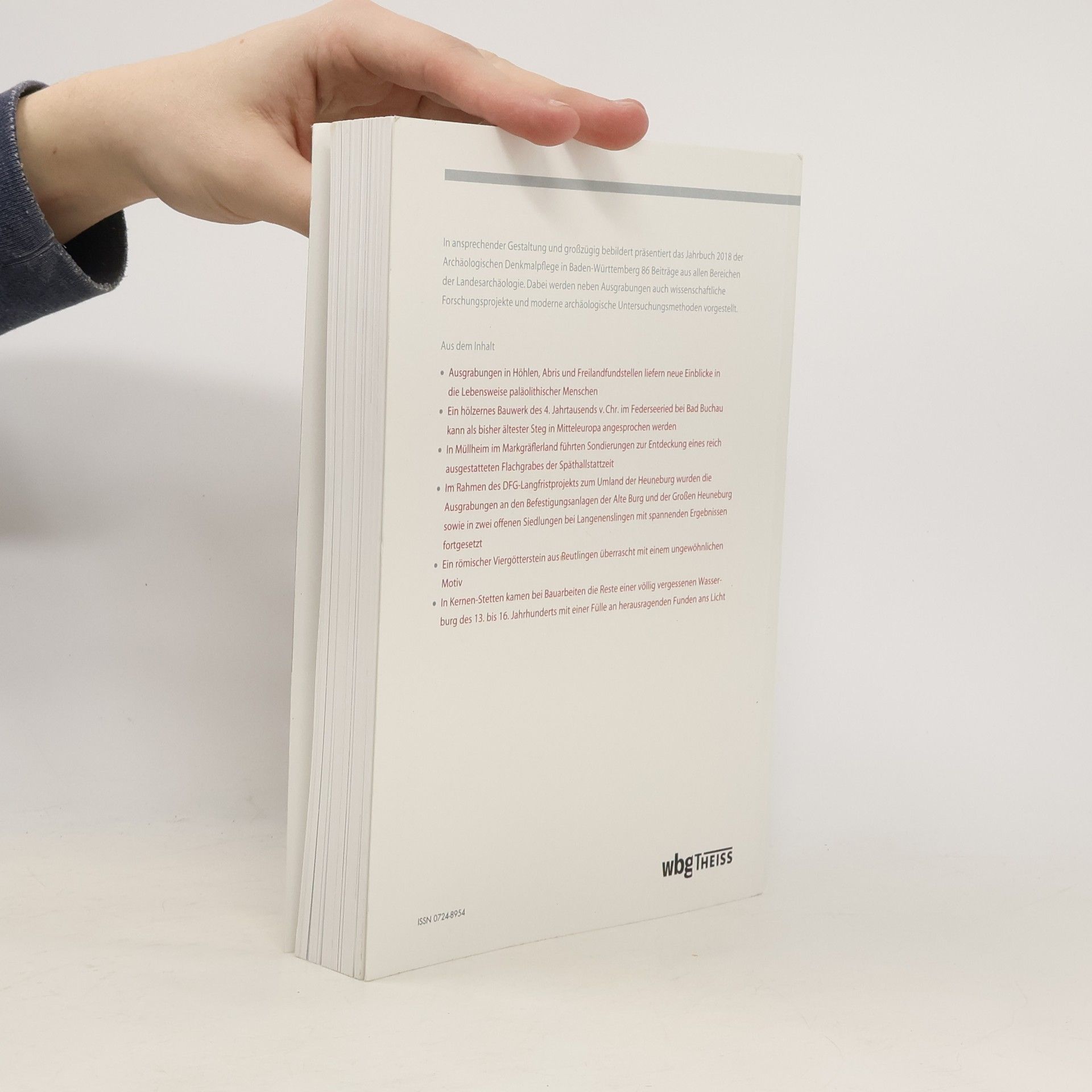 In ansprechender Gestaltung und großzügig bebildert präsentiert das Jahrbuch 2018 der Archäologischen Denkmalpflege in Baden-Württemberg 86 Beiträge aus allen Bereichen der Landesarchäoiogie. Dabei werden neben Ausgrabungen auch wissenschaftliche Forschungsprojekte und moderne archäologische Untersuchungsmethoden vorgestellt. Aus dem Inhalt: - Ausgrabungen in Höhlen, Abris und Freilandfundstellen liefern neue Einblicke in die Lebensweise paläolithischer Menschen - Ein hölzernes Bauwerk des 4. Jahrtausends v. Chr. im Federseeried bei Bad Buchau kann als bisher ältester Steg in Mitteleuropa angesprochen werden - In Müllheim im Markgräflerland führten Sondierungen zur Entdeckung eines reich ausgestatteten Flachgrabes der Späthallstattzeit - Im Rahmen des DFG-Langfristprojekts zum Umland der Heuneburg wurden die Ausgrabungen an den Befestigungsanlagen der Alte Burg und der Großen Heuneburg sowie in zwei offenen Siedlungen bei Langenenslingen mit spannenden Ergebnissen fortgesetzt - Ein römischer Viergötterstein aus Reutlingen überrascht mit einem ungewöhnlichen Motiv (Cover)- In Kernen-Stetten kamen bei Bauarbeiten die Reste einer völlig vergessenen Wasserburg des 13. bis 16. Jahrhunderts.mit einer Fülle an herausragenden Funden ans Licht