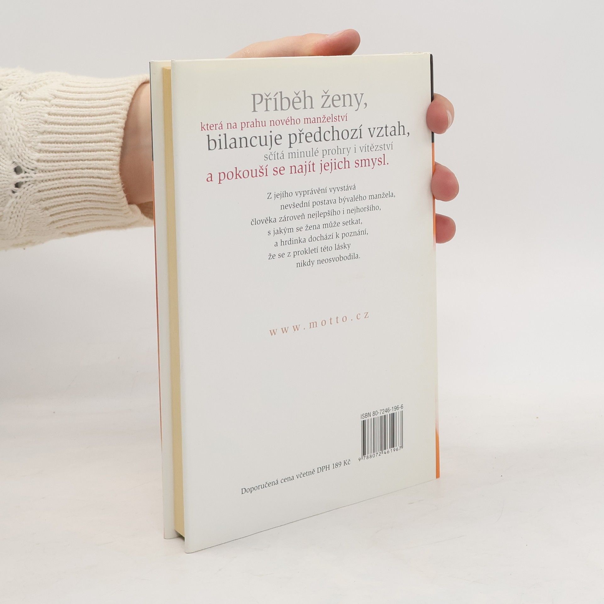 Román o ženě, která na prahu nového manželství bilancuje předchozí vztah, sčítá minulé prohry i vítězství a pokouší se najít jejich smysl. Z jejího vyprávění vyvstává nevšední postava bývalého manžela, člověka zároveň nejlepšího i nejhoršího, s jakým se setkala.