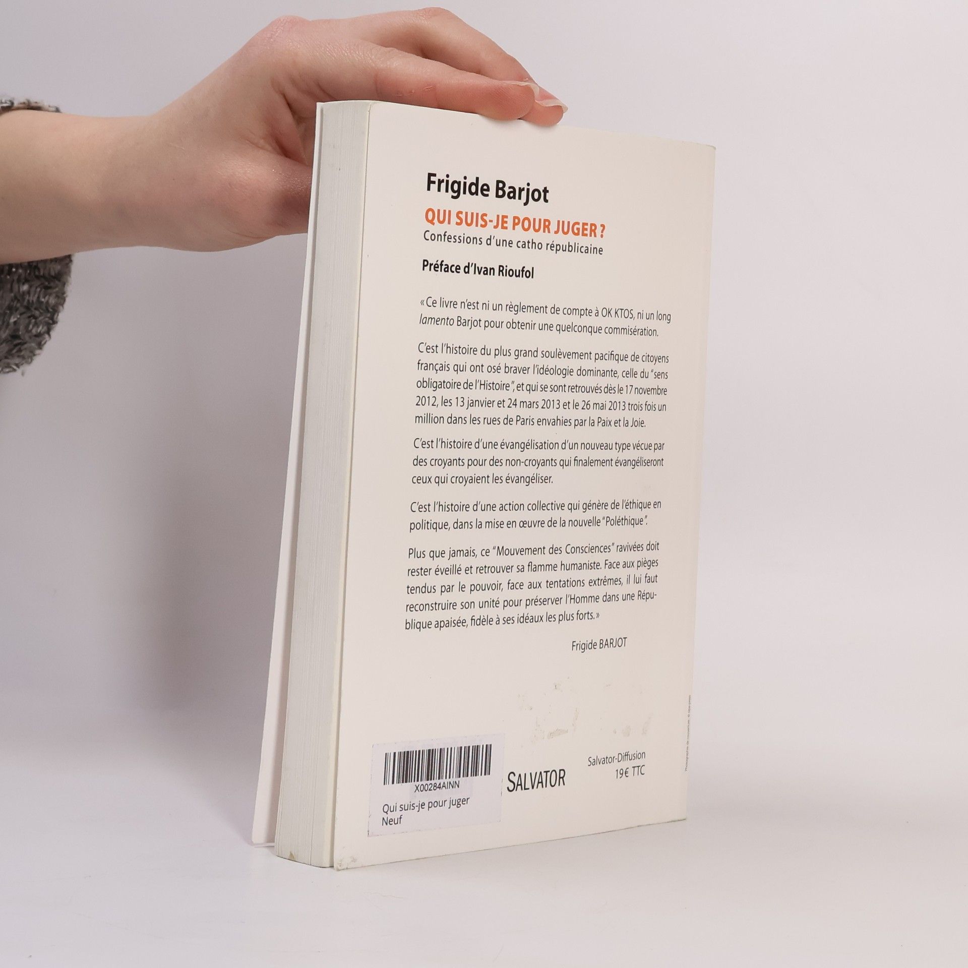 Ce livre n'est ni un règlement de compte à OK KTOS, ni un long lamento Barjot pour obtenir une quelconque commisération. C'est l'histoire du plus grand soulèvement pacifique de citoyens français qui ont osé braver l'idéologie dominante, celle du sens obligatoire de l' Histoire, et qui se sont retrouvés dès le 17 novembre 2012, les 13 janvier et 24 mars 2013 et le 26 mai 2013 trois fois un million dans les rues de Paris envahies par la Paix et la Joie. C'est l'histoire d'une évangélisation d'un nouveau type vécue par des croyants pour des non-croyants qui finalement évangéliseront ceux qui croyaient les évangéliser. C'est l'histoire d'une action collective qui génère de l'éthique en politique, dans la mise en oeuvre de la nouvelle Poléthique . Plus que jamais, ce Mouvement des Consciences ravivées doit rester éveillé et retrouver sa flamme humaniste. Face aux pièges tendus par le pouvoir, face aux tentations extrêmes, il lui faut reconstruire son unité pour préserver l'Homme dans une République apaisée, fidèle à ses idéaux les plus forts. Frigide Barjot