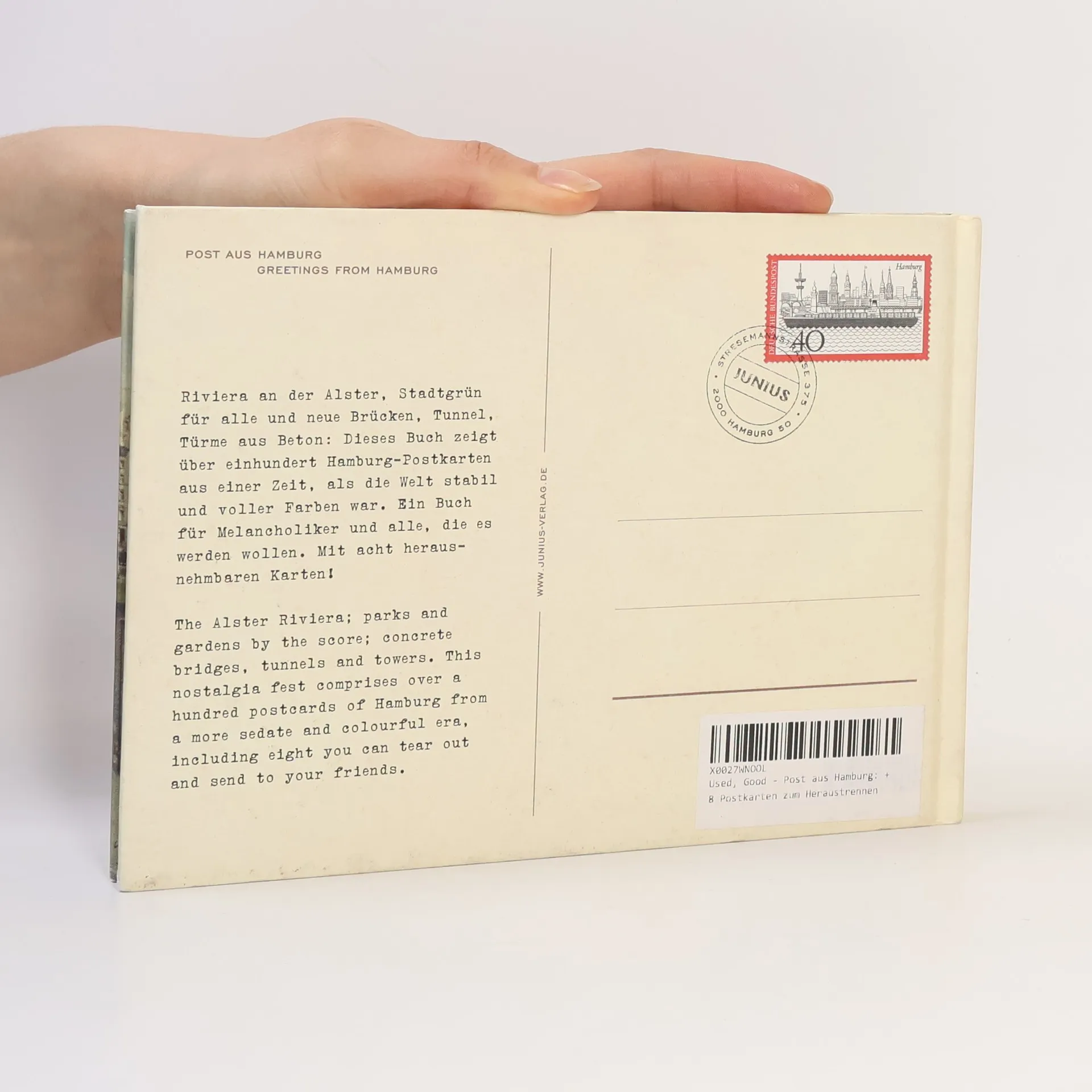 Bis zum Ende des 20. Jahrhunderts war die Ansichtspostkarte ein sehr gebräuchliches Medium. Als günstige Alternative zum Telefonat diente sie dazu, Reisetermine mitzuteilen, Glück- und Genesungswünsche zu übermitteln und Urlaubsgrüße zu versenden. Auf der Bildseite zeigten die Karten neben touristischen Motiven vor allem die Freizeit- und Konsumkultur ihrer Zeit, setzten bauliche und ingenieurtechnische Glanzleistungen ins Licht und dokumentierten auf diese Weise den sozialen Fortschritt. Heute muten die Karten, deren Farbgebung vom Wirtschaftswunder bis in die frühen 1980er Jahre zunehmend kräftiger wurde, wie Traumbilder des sozialdemokratischen Zeitalters an und lösen bei vielen Betrachtern große Wehmut aus. Dieses Buch zeigt 120 Hamburg-Postkarten aus den 1950er Jahren bis in die 1980er Jahre. Zu sehen sind dichter Palmenbestand an der Alster,breite Verkehrsschneisen und bunte Autos, Einkaufszentren und Kegelbahnen, Fernsehturm und neuer Elbtunnel, rustikale Ausflugslokale und die mondänen Speisesäle der 'Häuser ersten Ranges'. Am Ende des Buchs befinden sich ein acht perforierte Postkarten zum Verschicken und Verschenken.