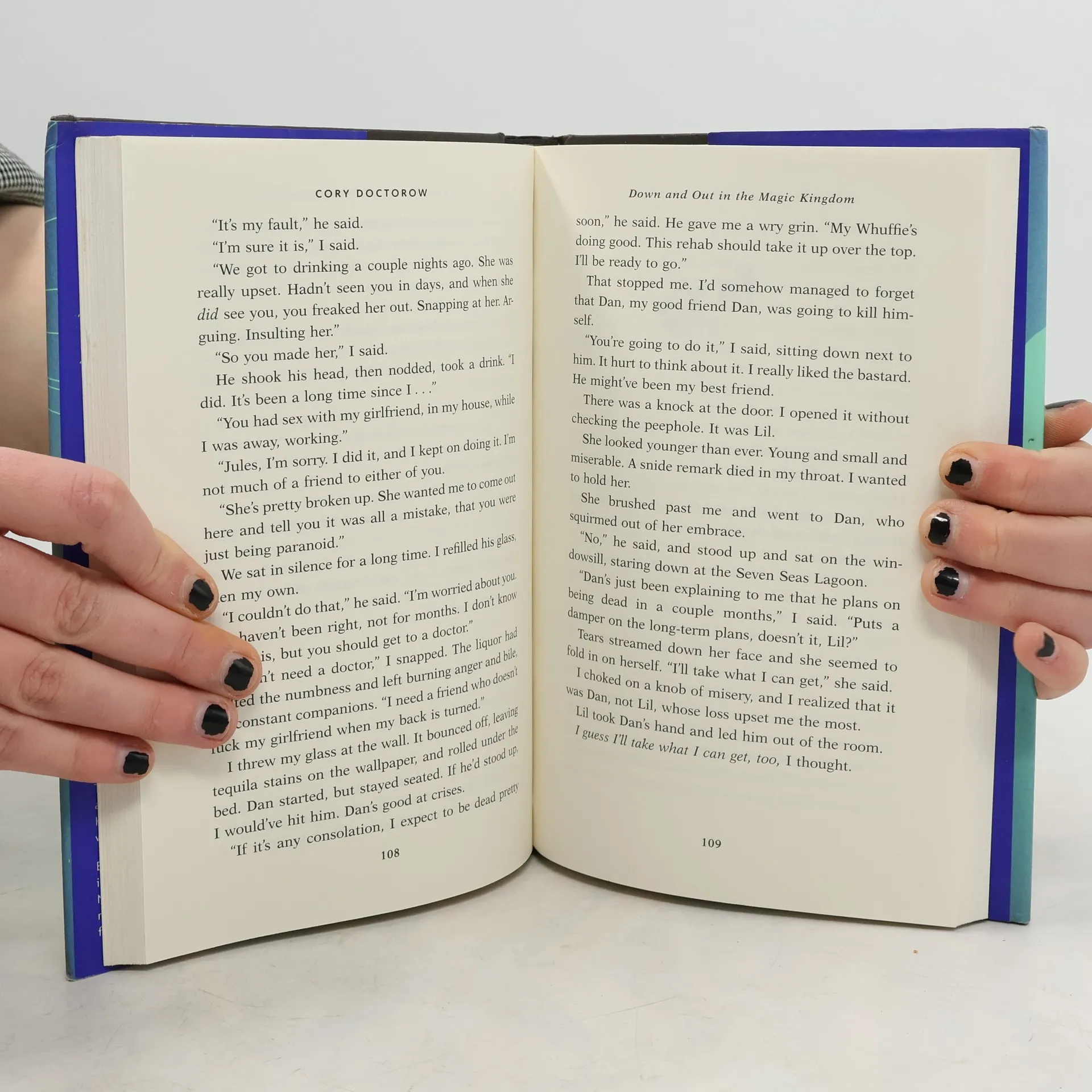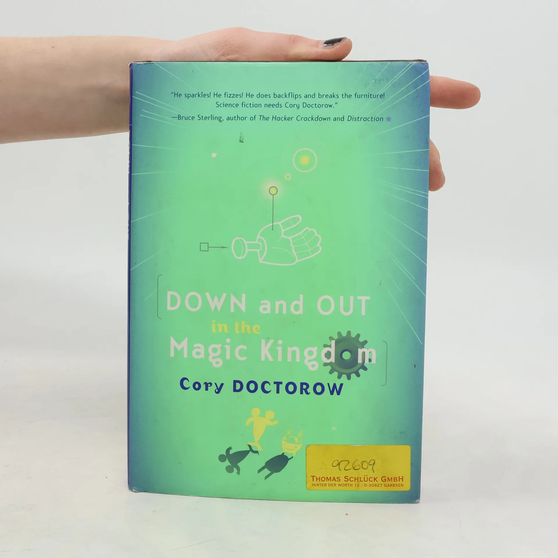 Jules is a young man barely a century old. He's lived long enough to see the cure for death and the end of scarcity, to learn ten languages and compose three symphonies...and to realize his boyhood dream of taking up residence in Disney World. Disney World! The greatest artistic achievement of the long-ago twentieth century. Now in the care of a network of volunteer "ad-hocs" who keep the classic attractions running as they always have, enhanced with only the smallest high-tech touches. Now, though, it seems the "ad hocs" are under attack. A new group has taken over the Hall of the Presidents and is replacing its venerable audioanimatronics with new, immersive direct-to-brain interfaces that give guests the illusion of being Washington, Lincoln, and all the others. For Jules, this is an attack on the artistic purity of Disney World itself. Worse: it appears this new group has had Jules killed. This upsets him. (It's only his fourth death and revival, after all.) Now it's war: war for the soul of the Magic Kingdom, a war of ever-shifting reputations, technical wizardry, and entirely unpredictable outcomes. Bursting with cutting-edge speculation and human insight, "Down and Out in the Magic Kingdom" reads like Neal Stephenson meets Nick Hornby: a coming-of-age romantic comedy and a kick-butt cybernetic tour de force.