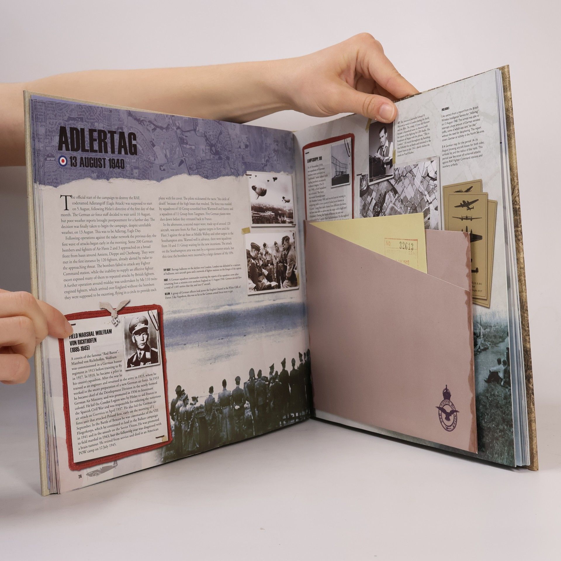 On 18 June 1940 Churchill declared in the Commons - 'The Battle of France is over...the Battle for Britain is about to begin'. With the fall of France, Great Britain was Hitler's last remaining stepping-stone to European domination. In July Hitler told his commanders to prepare for the invasion of England. To do this they would have to destroy the RAF - Britain's last line of defence. As such the Battle of Britain was without doubt one of, if not the, most important victories in British history. At the end of it Hitler cancelled all plans to invade England and the Allies maintained a European stronghold from which to launch the eventual operation to recapture mainland Europe. This book is the story of that the machines which took to the air; the tactics employed by each side; gripping accounts of the action; the people who took part from the Commanders, to the pilots to ground crew and plotters. Fascinating facsimile documents brings this great battle to life as never before. Documents to provisionally Churchill's notes for his famous 'never in the field of human conflict was so much owed by so many to so few'; the order and plans for Germany's invasion of Great Britain - Operation 'Sealion; and, log books of pilots who flew in the Battle.