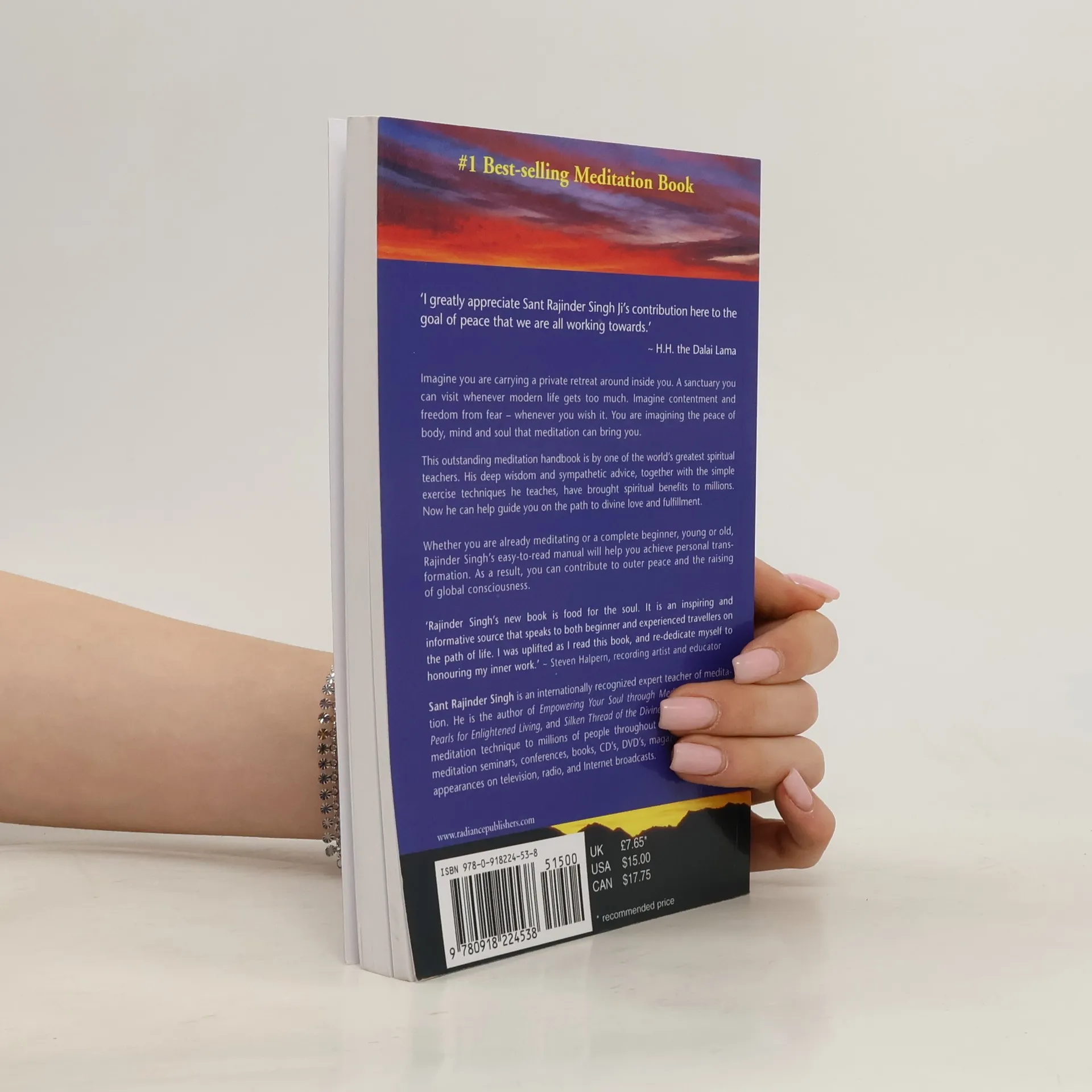 "I greatly appreciate Sant Rajinder Singh Ji's contribution here to the goal of peace that we are all working towards." --H.H. the Dalai LamaImagine you are carrying a private retreat around inside you--a sanctuary you can visit whenever modern life gets too much. Imagine contentment and freedom from fear--whenever you wish it. You are imagining the peace of body, mind, and soul that meditation can bring you. This outstanding meditation handbook is by one of the world's greatest spiritual teachers, Sant Rajinder Singh Ji Maharaj. His deep wisdom and sympathetic advice, together with the simple exercise techniques he teaches, have brought spiritual benefits to millions. Now he can help guide you on the path to divine love and fulfillment. Whether you are already meditating or a complete beginner, young or old, Sant Rajinder Singh's easy-to-read manual will help you achieve personal transformation. As a result, you can contribute to outer peace and the raising of global consciousness. "Rajinder Singh's new book is food for the soul. It is an inspiring and informative source that speaks to both beginner and experienced travellers on the path of life. I was uplifted as I read this book, and re-dedicate myself to honoring my inner work."--Steven Halper, recording artist and educatorSant Rajinder Singh is an internationally recognized expert teacher of meditation. He is the author of Empowering Your Soul through Meditation, Spark of the Divine, Meditation as Medication for the Soul, Silken Thread of the Divine, and Spiritual Pearls for Enlightened Living. He has taught his meditation technique to millions of people throughout the world through meditation seminars, conferences, books, CDs, DVDs, magazine articles, and appearances on television, radio, and Internet broadcasts. His regular talks on DVD, audio, and written messages are posted on www.sos.org.