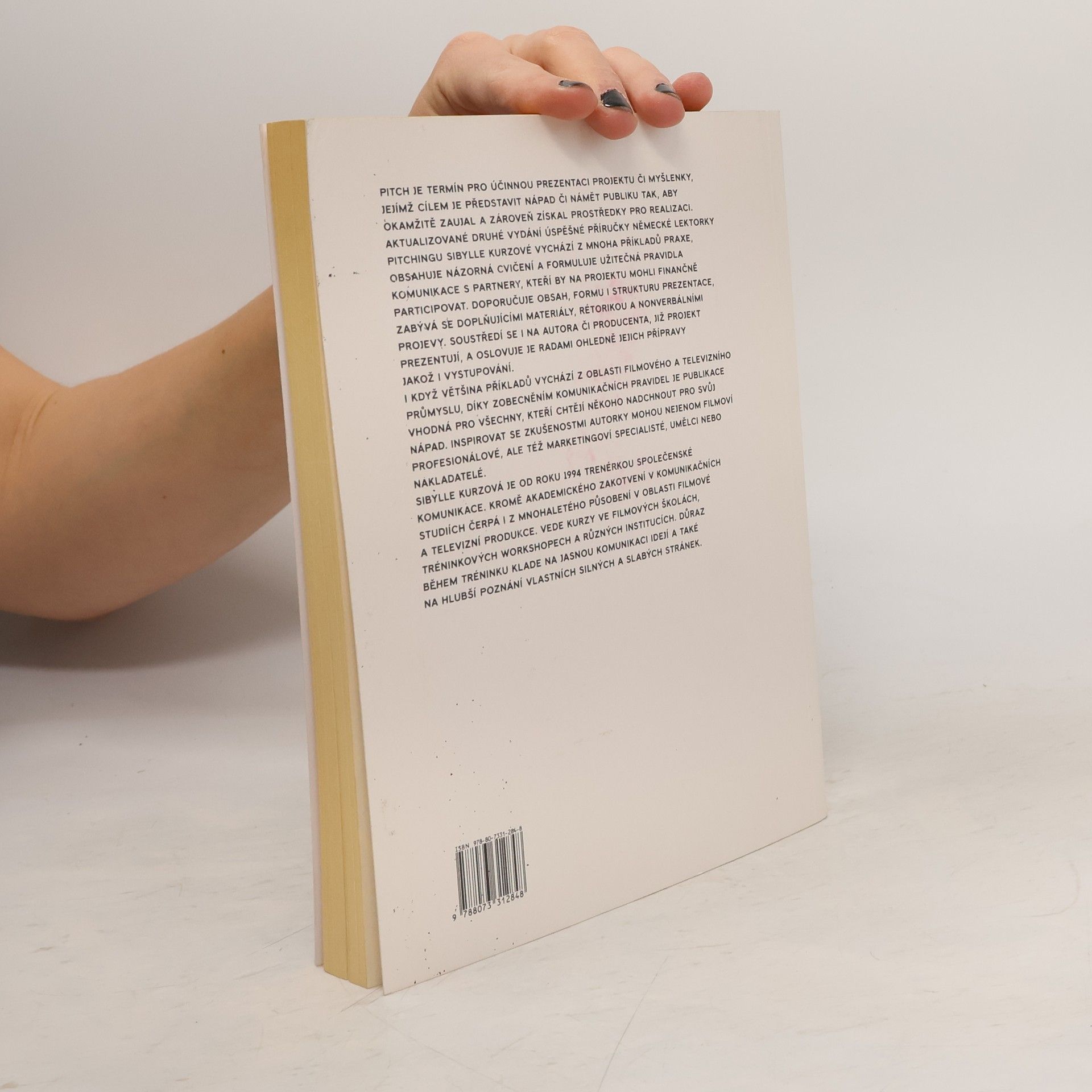 Pitch je termín pro prezentaci projektu či myšlenky, jejímž cílem je představit svůj nápad či námět publiku tak, aby okamžitě zaujal a zároveň získal prostředky pro realizaci. Aktualizované druhé vydání úspěšné příručky německé lektorky pitchingu Sibylle Kurz je obohaceno o mnoho příkladů z praxe. Kniha rovněž obsahuje názorná cvičení, a je tak vhodná pro všechny, kteří chtějí někoho nadchnout pro svůj nápad. Inspirovat se zkušenostmi autorky mohou nejenom filmoví profesionálové, ale také marketingoví specialisté, umělci nebo nakladatelé. Sibylle Kurz je od roku 1994 trenérkou společenské komunikace, která kromě akademického zakotvení v komunikačních studiích čerpá také z mnohaletého působení v oblasti filmové a televizní produkce. Vede intenzivní kurzy na filmových školách a v různých institucích. Důraz během tréninku klade na jasnou komunikaci idejí a také na hlubší poznání vlastních silných a slabých stránek.