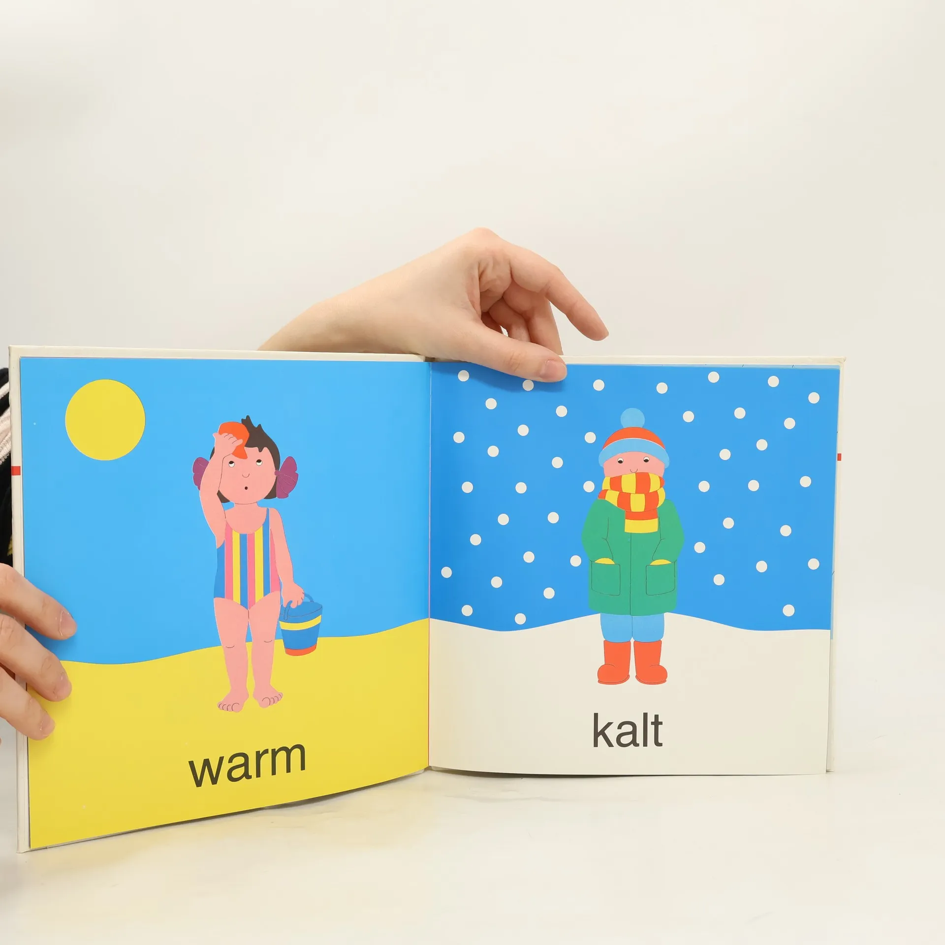 In duidelijke tekeningen en met eenvoudige woorden worden een groot aantal tegenstellingen uitgebeeld.