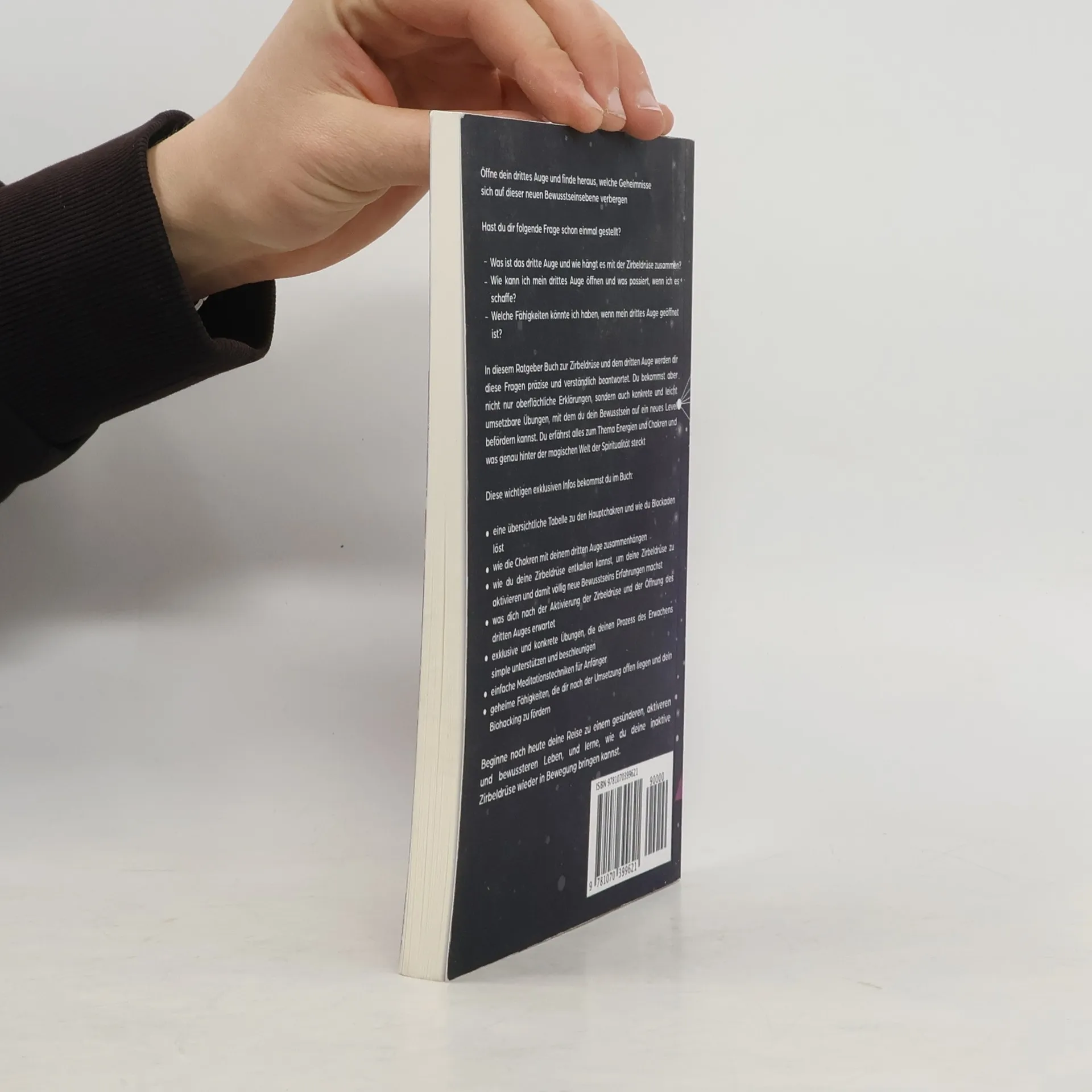 Hast du dir folgende Frage schon einmal gestellt? Dieser wichtigen exklusiven Information bekommst du im Beginne noch heute deine Reise zu einem gesünderen, aktiveren und bewussteren Leben, und lerne, wie du deine inaktive Zirbeldrüse wieder in Bewegung bringen kannst. Für wen dieses Buch nichts ist? Wie Du dieses Buch lesen kannst? Scrolle nach oben und klicke auf den „JETZT KAUFEN“ Button,Drittes Auge öffnen, deine einmalige ChanceEin wichtiger Hinweis zum Taschenbuch.Das Taschenbuch wird in Schwarzweiß gedruckt. Die Bilder im Taschenbuch müssen leider verkleinert werden. Da sich die kosten des Buches sonst ca. vervierfachen würden .