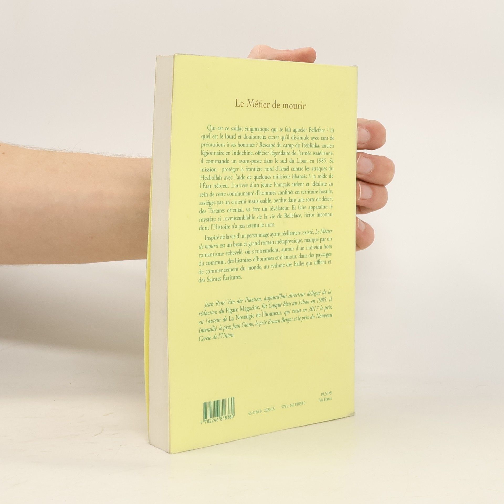 Qui est ce soldat énigmatique qui se fait appeler Belleface ? Et quel est le lourd et douloureux secret qu’il dissimule avec tant de précautions à ses hommes ? Rescapé du camp de Treblinka, ancien légionnaire en Indochine, officier légendaire de l’armée israélienne, il commande un avant-poste dans le sud du Liban en 1985. Sa mission : protéger la frontière nord d’Israël contre les attaques du Hezbollah avec l’aide de quelques miliciens libanais à la solde de l’État hébreu. L’arrivée d’un jeune Français ardent et idéaliste au sein de cette communauté d’hommes confinés en territoire hostile, assiégés par un ennemi insaisissable, perdus dans une sorte de désert des Tartares oriental, va être un révélateur. Et faire apparaître le mystère si invraisemblable de la vie de Belleface, héros inconnu dont l’Histoire n’a pas retenu le nom. Inspiré de la vie d’un personnage ayant réellement existé, Le Métier de mourir est un beau et grand roman métaphysique, marqué par un romantisme échevelé, où s’entremêlent, autour d’un individu hors du commun, des histoires d’hommes et d’amour, dans des paysages de commencement du monde, au rythme des balles qui sifflent et des Saintes Écritures.