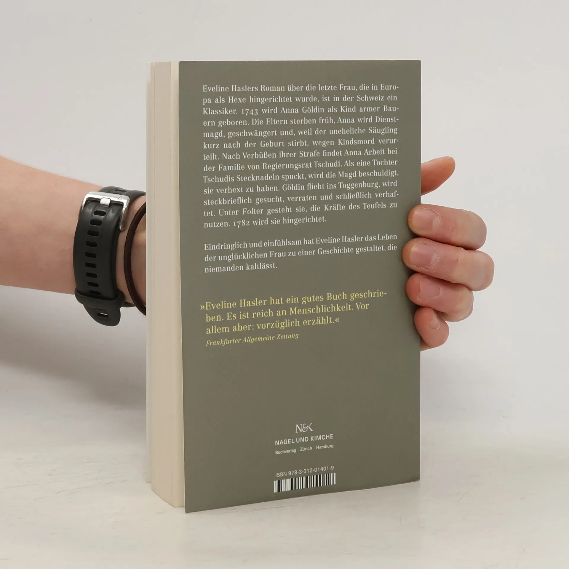 Eveline Haslers Roman über die letzte Frau, die in Europa als Hexe hingerichtet wurde, ist in der Schweiz ein Klassiker. 1743 wird Anna Göldin als Kind armer Bauern geboren. Die Eltern sterben früh, Anna wird Dienstmagd, geschwängert und, weil der uneheliche Säugling kurz nach der Geburt stirbt, wegen Kindsmord verurteilt. Nach Verbüßen ihrer Strafe findet Anna Arbeit bei der Familie von Regierungsrat Tschudi. Als eine Tochter Tschudis Stecknadeln spuckt, wird die Magd beschuldigt, sie verhext zu haben. Göldin flieht ins Toggenburg, wird steckbrieflich gesucht, verraten und schließlich verhaftet. Unter Folter gesteht sie, die Kräfte des Teufels zu nutzen. 1782 wird sie hingerichtet. Eindringlich und einfühlsam hat Eveline Hasler das Leben der unglücklichen Frau zu einer Geschichte gestaltet, die niemanden kaltlässt.
