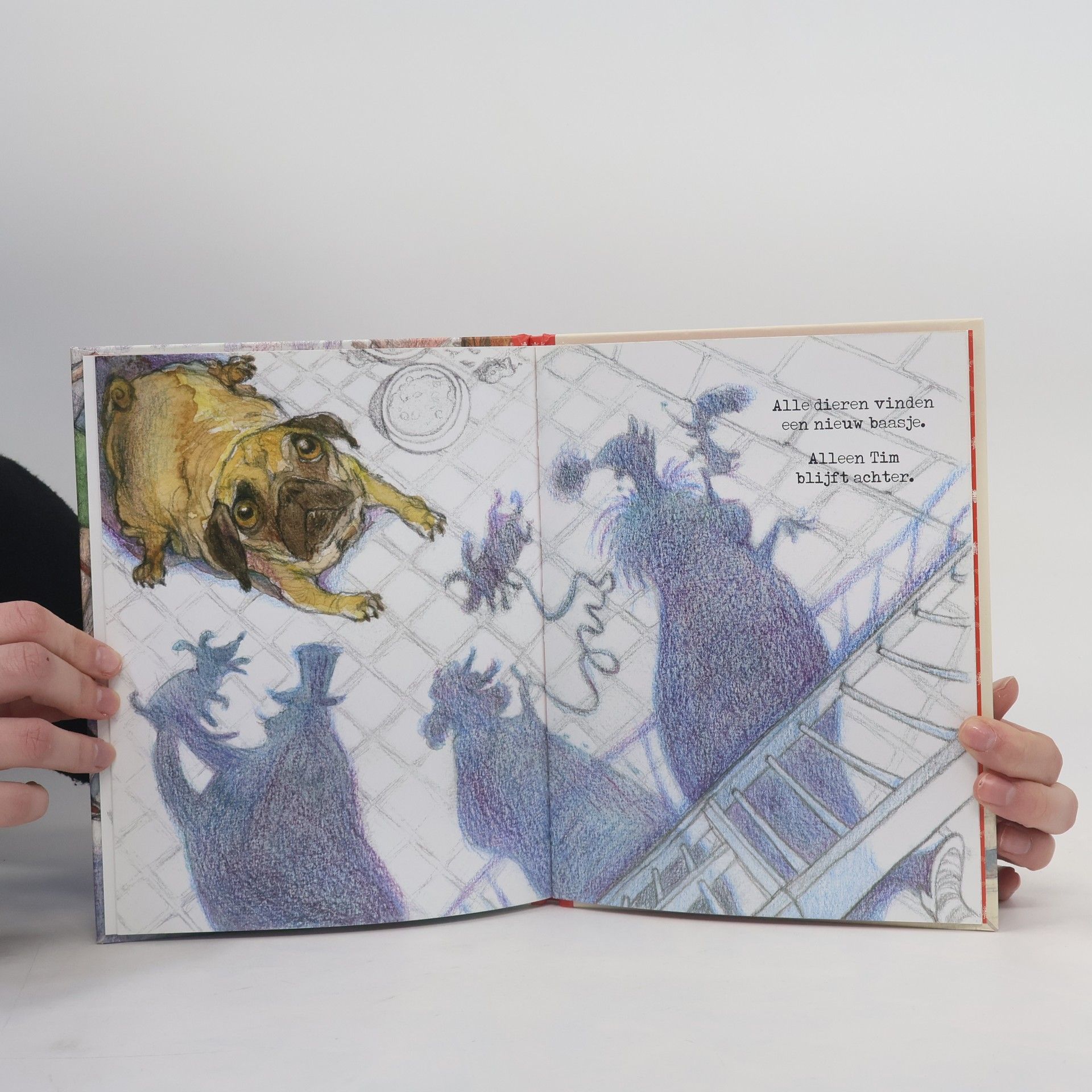 Alle hondjes in het asiel vinden een baasje dat bij hen past, alleen Tim blijft achter. Prentenboek met dynamische potloodtekeningen in kleur. Vanaf ca. 4 jaar.