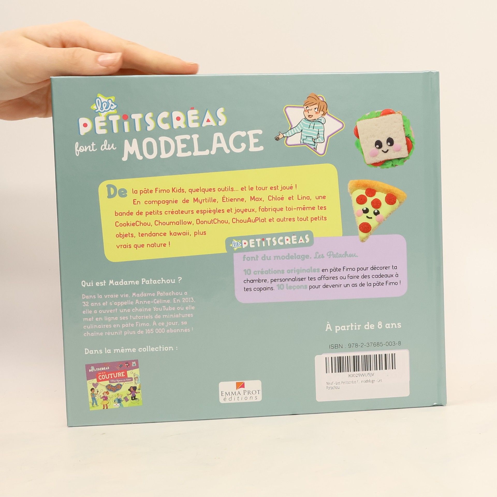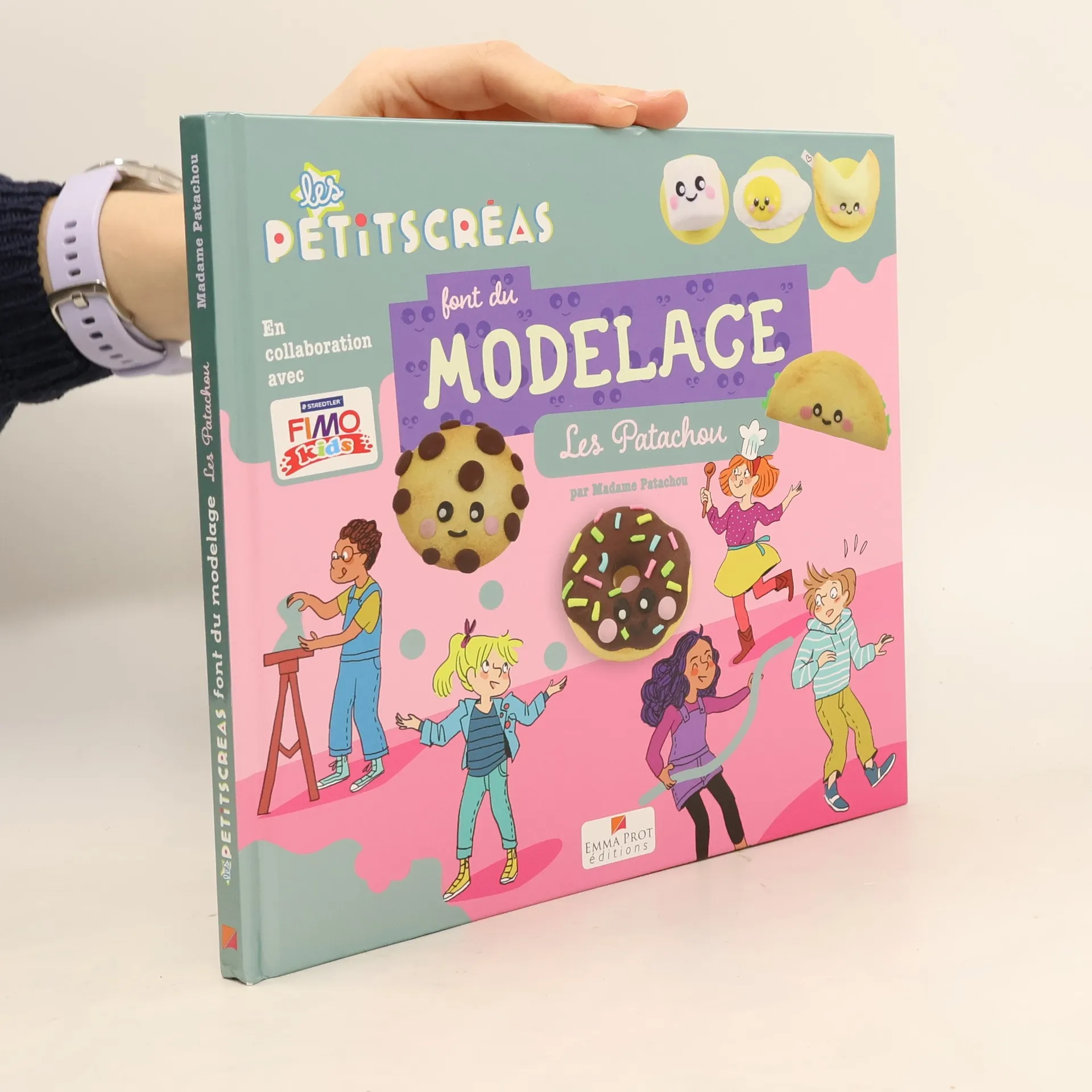 Les Petits Créas la nouvelle collection pour les enfants créatifs. Suis bien les conseils de Madame PatachouUn peu de pâte Fimo Kids, quelques outils... et le tour est joué.En compagnie de Myrtille, Etienne, Max, Chloé et Lina, une bande de petits créateurs espiègles et joyeux, fabrique toi-même tes cookie, chamallow, taco, donut, et autres tout petits objets tendance kawaï plus vrais que nature !Tu verras c'est très facile... car Madame Patachou (Anne-Céline Noum) t'accompagne dans chaque étape et t'apprend au passage les techniques de base du modelage Fimo.Dans cette première collection Jeunesse d'Emma Prot Editions avec la collaboration de Nathalie Weil, éditrice Jeunesse, " Les Petits Créas ", cinq enfants joyeux et espiègles auxquels les jeunes lecteurs pourront s'identifier, accompagnent les enfants dans la création de 10 modèles originaux tout en les initiant aux techniques de base d'un loisir créatif. Les pas à pas sont illustrés et toutes les opérations sont représentées. Le résultat de chaque création est présenté en photo.