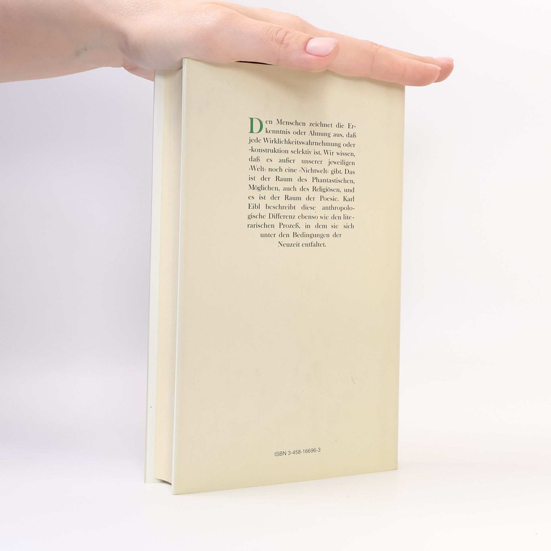Karl Eibl, geboren 1940, war Professor für Neuere deutsche Literaturwissenschaft an der Ludwig-Maximilians-Universität in München. Im Insel Verlag erschien die monographische Studie Die Entstehung der Poesie (1994). Er verstarb am 18.2.2014.