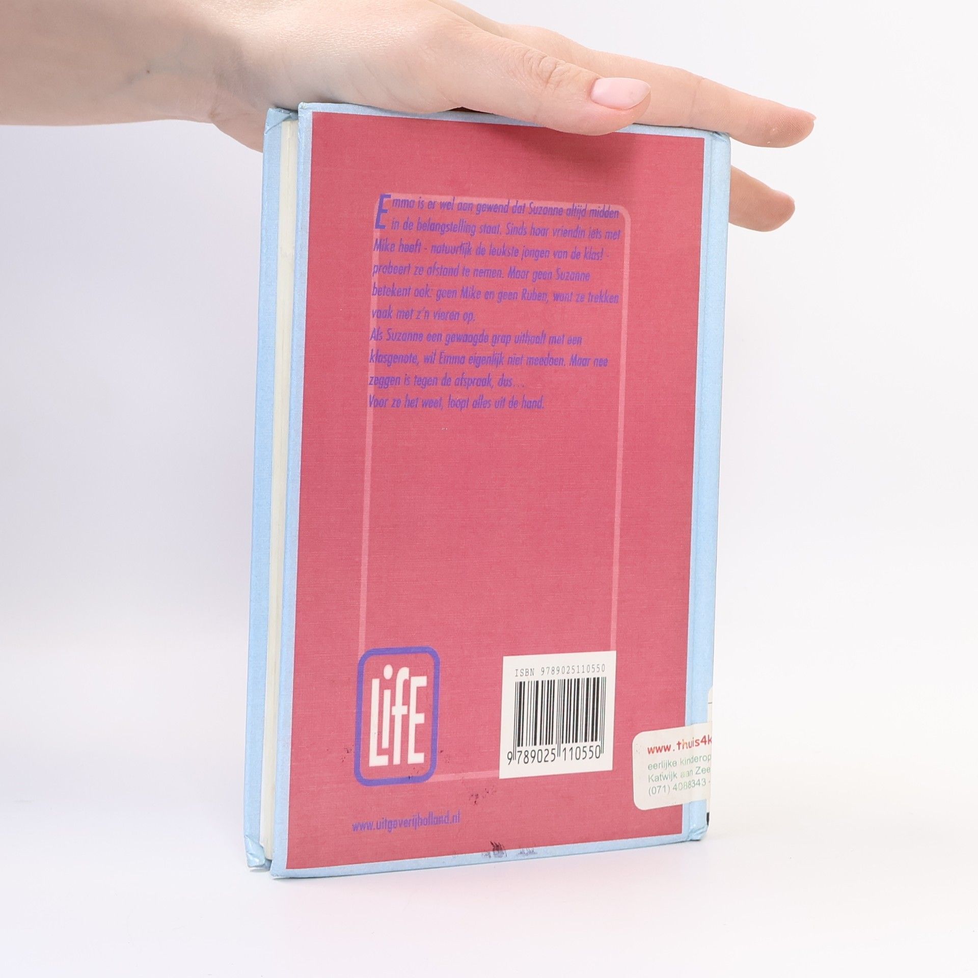 Emma is er wel aan gewend dat Suzanne altijd midden in de belangstelling staat. Sinds haar vriendin iets met Mike heeft ' natuurlijk de leukste jongen van de klas! ' probeert ze afstand te nemen. Maar geen Suzanne betekent ook: geen Mike en geen Ruben, want ze trekken vaak met z'n vieren op.