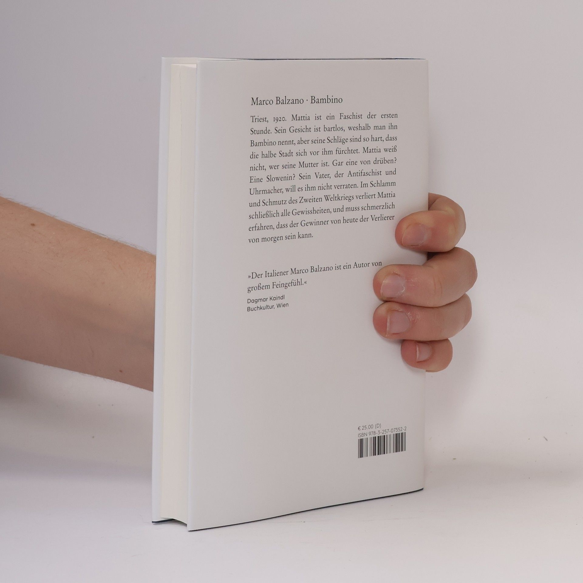 Triest, 1920. Mattia ist ein Faschist der ersten Stunde. Sein Gesicht ist noch bartlos, weshalb man ihn Bambino nennt, aber seine Schläge sind so hart, dass die halbe Stadt sich vor ihm fürchtet. Mattia weiß nicht, wer seine Mutter ist. Gar eine von drüben? Eine Slowenin? Sein Vater, der Antifaschist und Uhrmacher, will es ihm nicht verraten. Im Schlamm und Schmutz des Zweiten Weltkriegs verliert Mattia schließlich alle Gewissheiten, und er muss erfahren, dass der Gewinner von heute der Verlierer von morgen sein kann.
