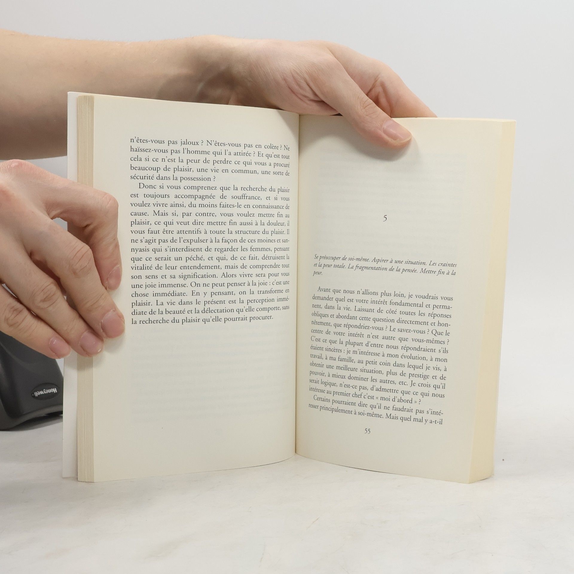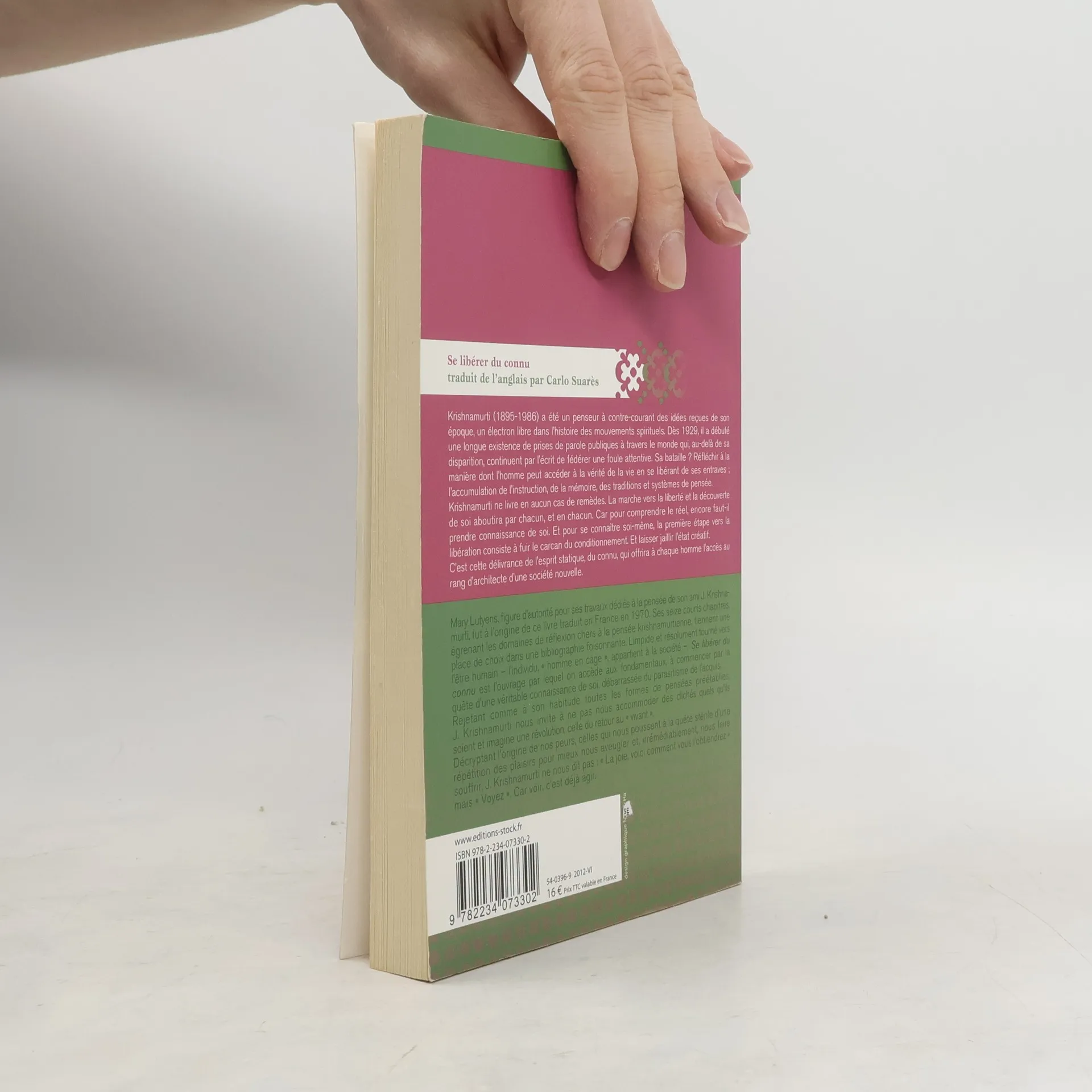Krishnamurti (1895-1986) a été un penseur qui a remis en question les idées reçues de son époque. Depuis 1929, il a pris la parole à travers le monde, continuant d’inspirer un large public même après sa mort. Sa quête est de réfléchir sur la manière dont l'homme peut accéder à la vérité de la vie en se libérant des entraves telles que l'instruction, la mémoire et les traditions. Il ne propose aucun remède, affirmant que la liberté et la découverte de soi doivent être vécues individuellement. Pour comprendre le réel, il est essentiel de se connaître soi-même, et la première étape vers cette libération est de fuir le conditionnement pour laisser émerger un état créatif. Cette délivrance de l'esprit statique permettra à chacun de devenir l'architecte d'une nouvelle société. Mary Lutyens (1908-1999), experte de la pensée de Krishnamurti, a contribué à la publication de cet ouvrage en France en 1970. Composé de seize chapitres, il aborde des réflexions essentielles de la pensée krishnamurtienne, se concentrant sur la quête d'une véritable connaissance de soi, libre des schémas préétablis. Krishnamurti rejette les idées toutes faites, notamment religieuses, et appelle à une révolution vers le vivant. En décryptant l'origine de nos peurs et de la violence, il nous invite à voir plutôt qu'à chercher des recettes pour la joie, car voir, c'est déjà agir.
