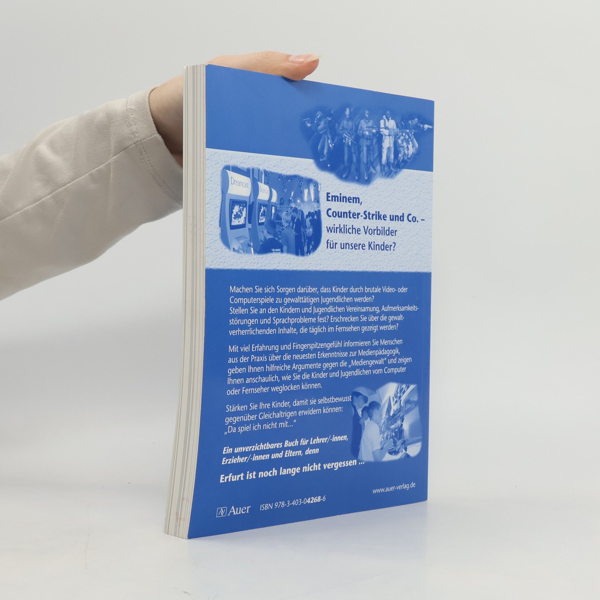 Eminem, Counterstrike und Co. – wirkliche Vorbilder für unsere Kinder? Machen Sie sich Sorgen darüber, dass Kinder durch brutale Video- oder Computerspiele zu gewalttätigen Jugendlichen werden? Stellen Sie an den Kindern und Jugendlichen Vereinsamung, Aufmerksamkeitsstörungen und Sprachprobleme fest? Erschrecken Sie über die gewaltverherrlichenden Inhalte, die täglich im Fernsehen gezeigt werden? Mit viel Erfahrung und Fingerspitzengefühl informieren Sie Menschen aus der Praxis über die neuesten Erkenntnisse zur Medienpädagogik, geben Ihnen hilfreiche Argumente gegen die "Mediengewalt" und zeigen Ihnen anschaulich, wie Sie die Kinder und Jugendlichen vom Computer oder Fernseher weglocken können. Stärken Sie Ihre Kinder, damit sie selbstbewusst gegenüber Gleichaltrigen erwidern können: "Da spiel ich nicht mit..." Ein unverzichtbares Buch für Lehrer/-innen, Erzieher/-innen und Eltern, denn Erfurt ist noch lange nicht vergessen ... Die Autoren der vorliegenden Handreichung für Eltern und Lehrer sind Pädagogen, Psychologen, Schüler, Juristen, Kinder- und Jugendpsychiater, Neurobiologen, Medienwissenschaftler und zum größten Teil selbst Eltern oder Lehrer. Der Band stellt eigene Erfahrungen wie auch wissenschaftliche Erkenntnisse der Medienwirkungsforschung anschaulich dar.
