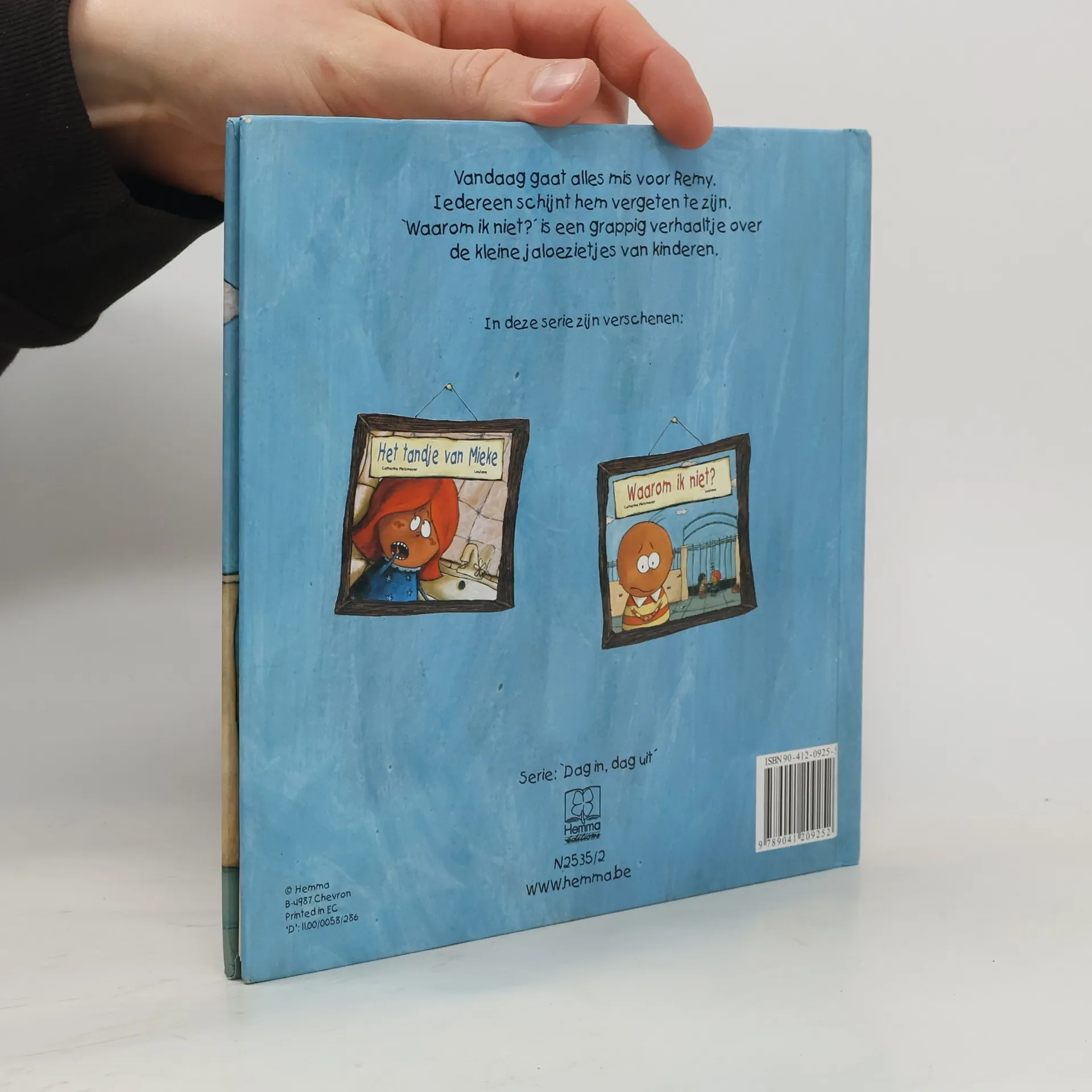 Remy is jaloers op al die kinderen die krijgen wat hij graag wil hebben, tot hij van zijn moeder net zoveel kusjes krijgt als hij wil. Prentenboek met naïeve tekeningen in aardetinten. Vanaf ca. 4 jaar.