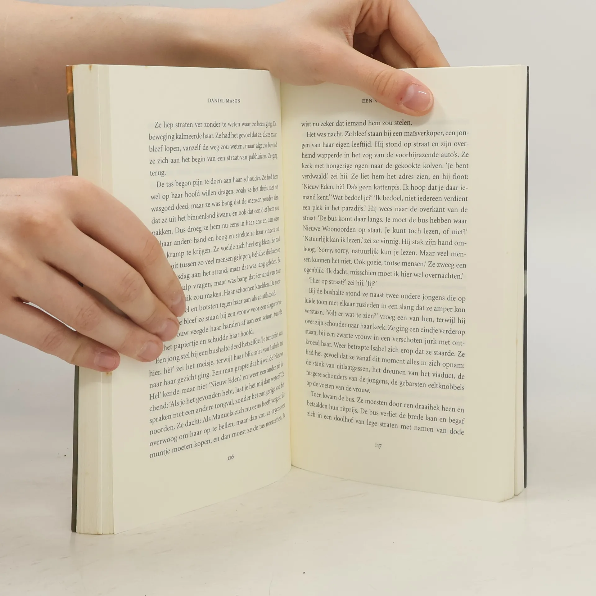 Vanaf hun geboorte zijn Isabel en haar broer Isaias onafscheidelijk. Ze groeien op in een geïsoleerd dorp in een land dat wordt geteisterd door droogte en hongersnood. Hij is muzikant, een jongen vol levenslust en grootse dromen; zij is een ongewoon kind met een unieke kijk op de wereld om haar heen. Isaias besluit op een dag zijn geluk te beproeven in de grote stad. Wanneer ook Isabel door omstandigheden gedwongen wordt naar de stad te trekken, vindt ze alleen troost bij de gedachte haar broer weer te zullen zien. Eenmaal daar aangekomen komt ze tot de schokkende ontdekking dat hij al maanden spoorloos verdwenen is. Enkel gewapend met een rotsvast vertrouwen, besluit ze op zoek te gaan naar Isaias. Gedragen door Daniel Masons gevoelige en beeldende manier van vertellen, is Een ver land het verhaal van de wonderbaarlijke tocht van Isabel en van haar belevenissen in de beangstigende wereld waarin ze terechtkomt. Een onvergetelijk en prachtig boek over liefde en geloof, volharding en overlevingsdrang.