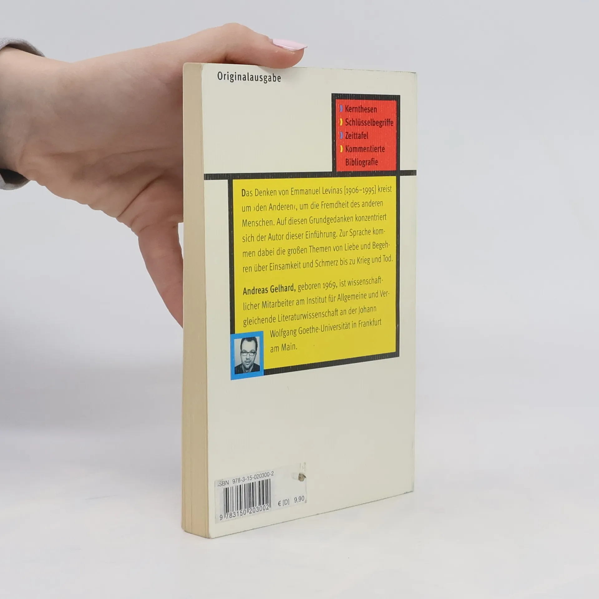 Das Denken von Emmanuel Levinas [1906-1995] kreist um den Anderen, um die Fremdheit des anderen Menschen. Auf diesen Grundgedanken konzentriert sich der Autor dieser Einführung. Zur Sprache kommen dabei die großen Themen von Liebe und Begehren über Einsamkeit und Schmerz bis zu Krieg und Tod. Andreas Gelhard, geboren 1969, ist wissenschaftlicher Mitarbeiter am Institut für Allgemeine und Vergleichende Literaturwissenschaft an der Johann Wolfgang Goethe-Universität in Frankfurt am Main.
