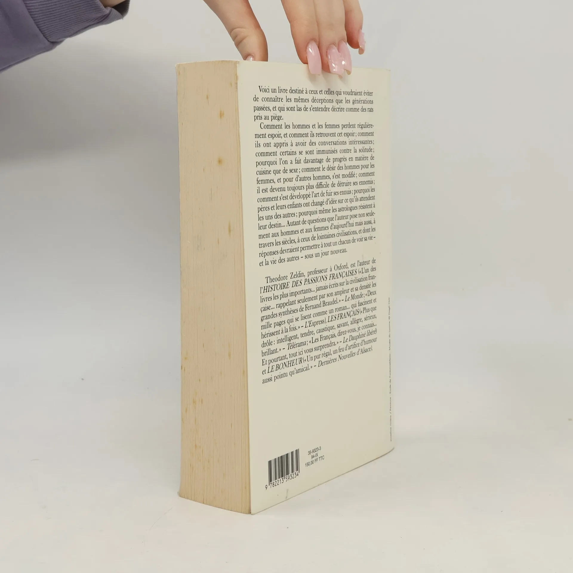 Voici un livre destiné à ceux et celles qui voudraient éviter de connaître les mêmes déceptions que les générations passées, et qui sont las de s'entendre décrire comme des rats pris au piège.Comment les hommes et les femmes perdent régulièrement espoir, et comment ils retrouvent cet espoir; comment ils ont appris à avoir des conversations intéressantes; comment certains se sont immunisés contre la solitude; pourquoi l'on a fait davantage de progrès en matière de cuisine que de sexe; comment le désir des hommes pour les femmes, et pour d'autres hommes, s'est modifié; comment il est devenu toujours plus difficile de détruire ses ennemis; comment s'est développé l'art de fuir ses ennuis; pourquoi les pères et leurs enfants ont changé d'idée sur ce qu'ils attendent les uns des autres; pourquoi même les astrologues résistent à leur destin... Autant de questions que l'auteur pose non seulement aux hommes et aux femmes d'aujourd'hui mais aussi, à travers les siècles, à ceux de lointaines civilisations, et dont les réponses devraient permettre à tout un chacun de voir sa vie _ et la vie des autres _ sous un jour nouveau.Theodore Zeldin, professeur à Oxford, est l'auteur de l' HISTOIRE DES PASSIONS FRANÇAISES ( " L'un des livres les plus important... jamais écrits sur la civilisation française... rappelant seulement par son ampleur et sa densité les grandes synthèses de Fernand Braudel. " _ Le Monde ; " Deux mille pages qui se lisent comme un roman... qui fascinent et hérissent à la fois. " _ L'Express ), LES FRANÇAIS ( " Plus que drô intelligent, tendre, caustique, savant, allègre, sérieux, brillant. " _ Télérama; " Les Français, direz-vous, je connais... Et pourtant, tout ici vous surprendra. " _ Le Dauphiné libéré ) et LE BONHEUR ( " Un pur régal, un feu d'artifice d'humour aussi pointu qu'amical. " _ Dernières Nouvelles d'Alsace ).