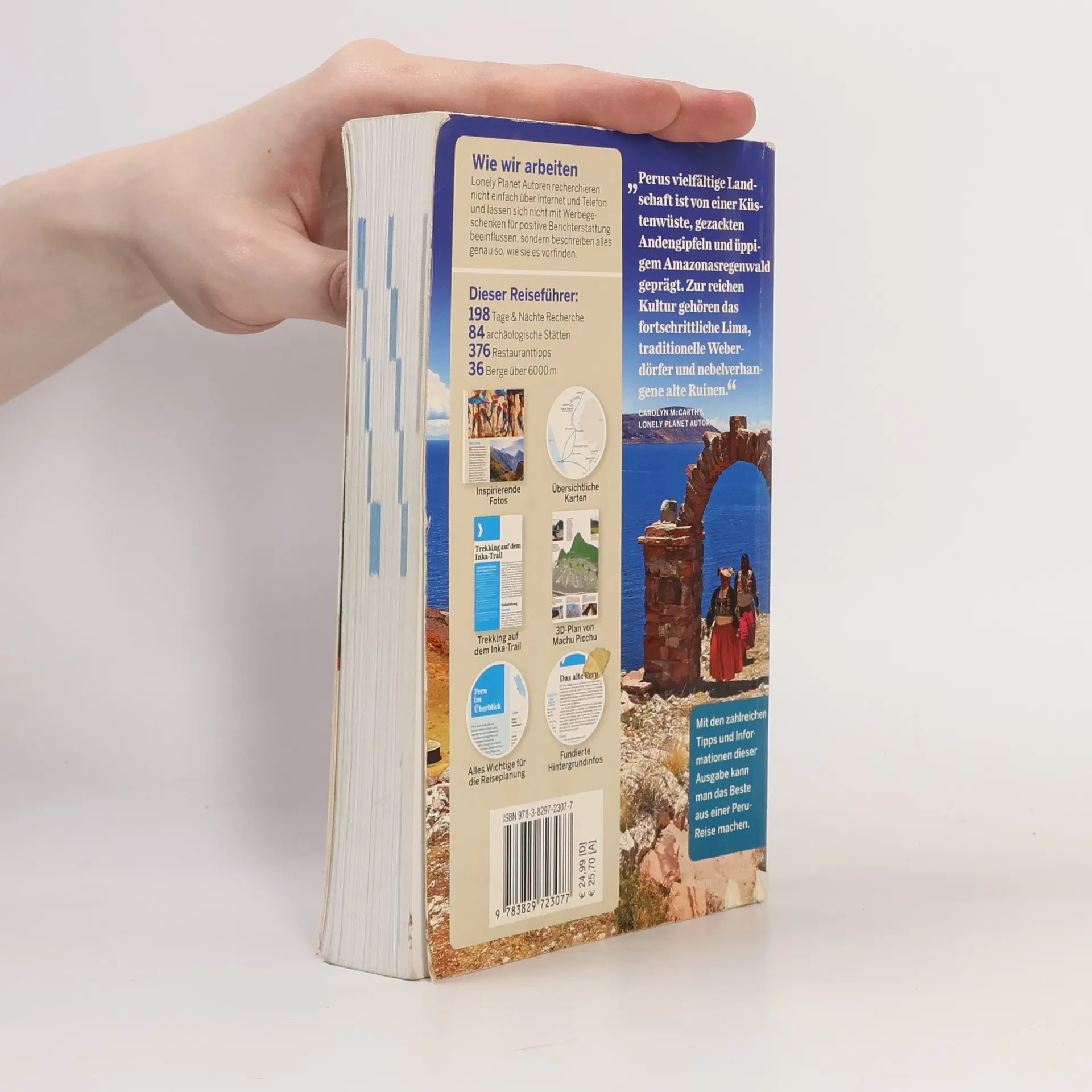 Entdecken Sie Peru mit einem umfassenden Reiseführer, der monatelange Recherche und wertvolle Tipps für Individualreisende bietet. Auf über 600 Seiten erhalten Sie fundierte Hintergrundinformationen, Planungshilfen und detaillierte Beschreibungen der Sehenswürdigkeiten, einschließlich aktueller Öffnungszeiten und Preise. Der Guide richtet sich auch an Abenteurer, die abseits der üblichen Pfade reisen möchten. Peru bietet erstklassige Trekkingmöglichkeiten in den Anden und kulinarische Erlebnisse, wie Kochkurse in Arequipa, um die peruanische Küche zu erlernen. Kulturell Interessierte können den wenig bekannten Parque Nacional Manu erkunden, wo unkontaktierte Völker leben. Für jede größere Stadt gibt es Empfehlungen zu Unterkünften und Restaurants für jedes Budget. Der Reiseführer enthält zudem Übersichts- und Detailkarten, ein Kapitel zu den 20 Top-Erlebnissen, Informationen zum Trekking auf dem Inka-Trail, eine 3D-Ansicht von Machu Picchu, Reiserouten, umfassende Hintergrundinformationen sowie ein Glossar und einen Sprachführer. Der Reiseführer ist ehrlich, praktisch und humorvoll geschrieben und bietet inspirierende Eindrücke und Erfahrungen für Ihre Reise durch Peru.