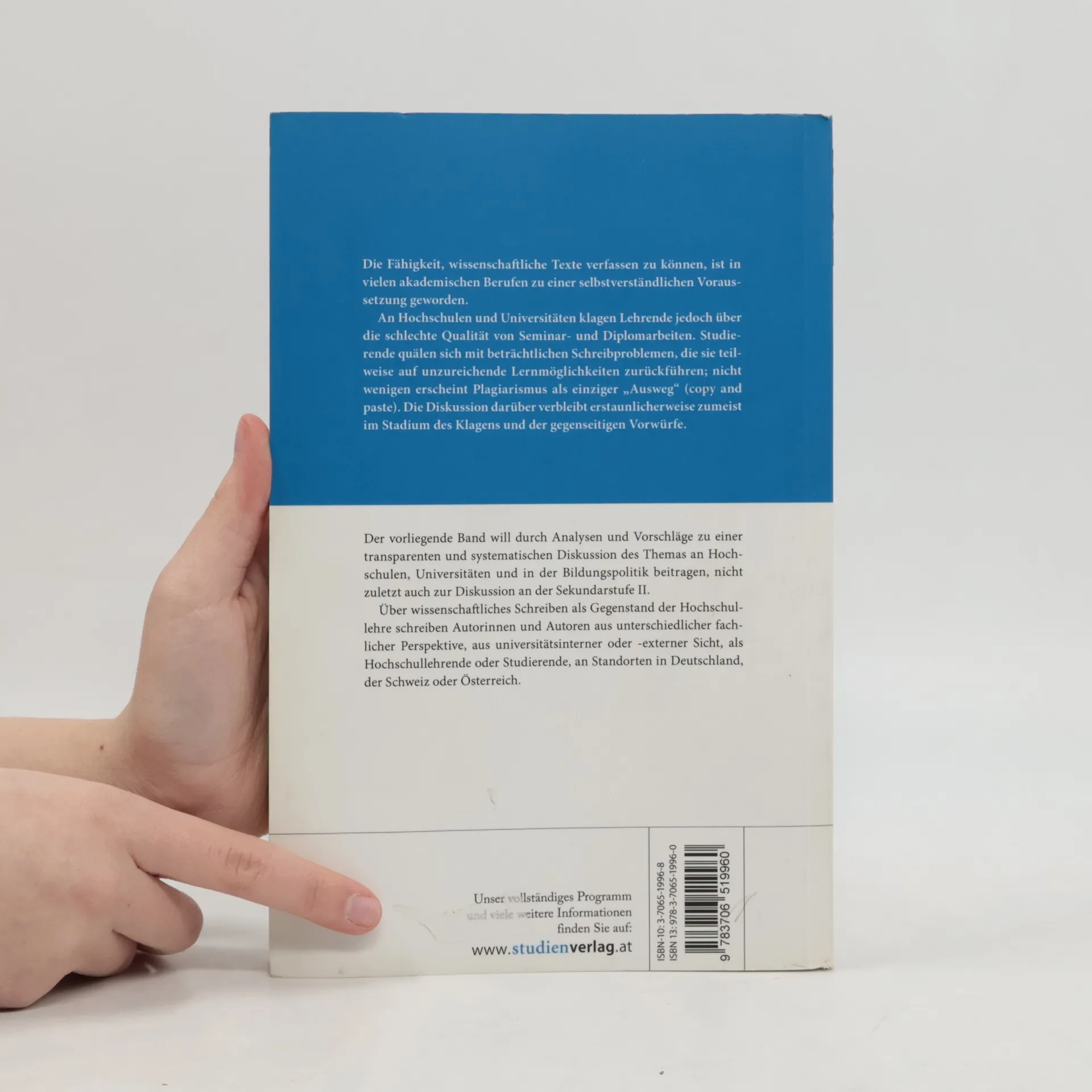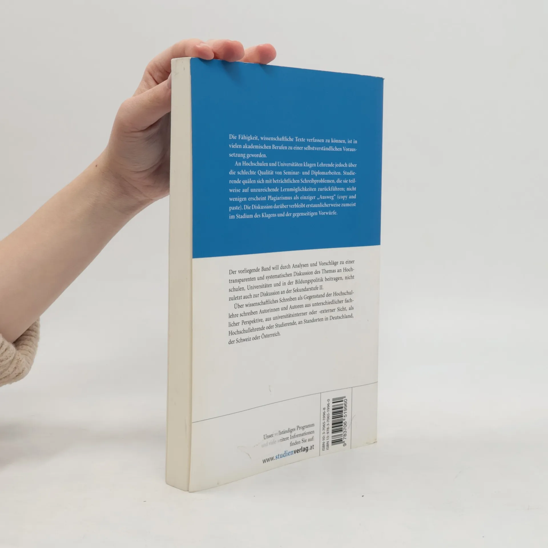 Die Fähigkeit, wissenschaftliche Texte verfassen zu können, ist in vielen akademischen Berufen zu einer selbstverständlichen Voraussetzung geworden. An Hochschulen und Universitäten klagen Lehrende jedoch über die schlechte Qualität von Seminar- und Diplomarbeiten. Studierende quälen sich mit beträchtlichen Schreibproblemen, die sie teilweise auf unzureichende Lernmöglichkeiten zurückführen; nicht wenigen erscheint Plagiarismus als einziger „Ausweg“ (copy and paste). Der vorliegende Band will durch Analysen und Vorschläge zu einer transparenten und systematischen Diskussion des Themas an Hochschulen, Universitäten und in der Bildungspolitik beitragen, nicht zuletzt auch zur Diskussion an der Sekundarstufe II. Über wissenschaftliches Schreiben als Gegenstand der Hochschullehre schreiben Autorinnen und Autoren aus unterschiedlicher fachlicher Perspektive, aus universitätsinterner oder -externer Sicht, als Hochschullehrende oder Studierende, an Standorten in Deutschland, der Schweiz oder Österreich.